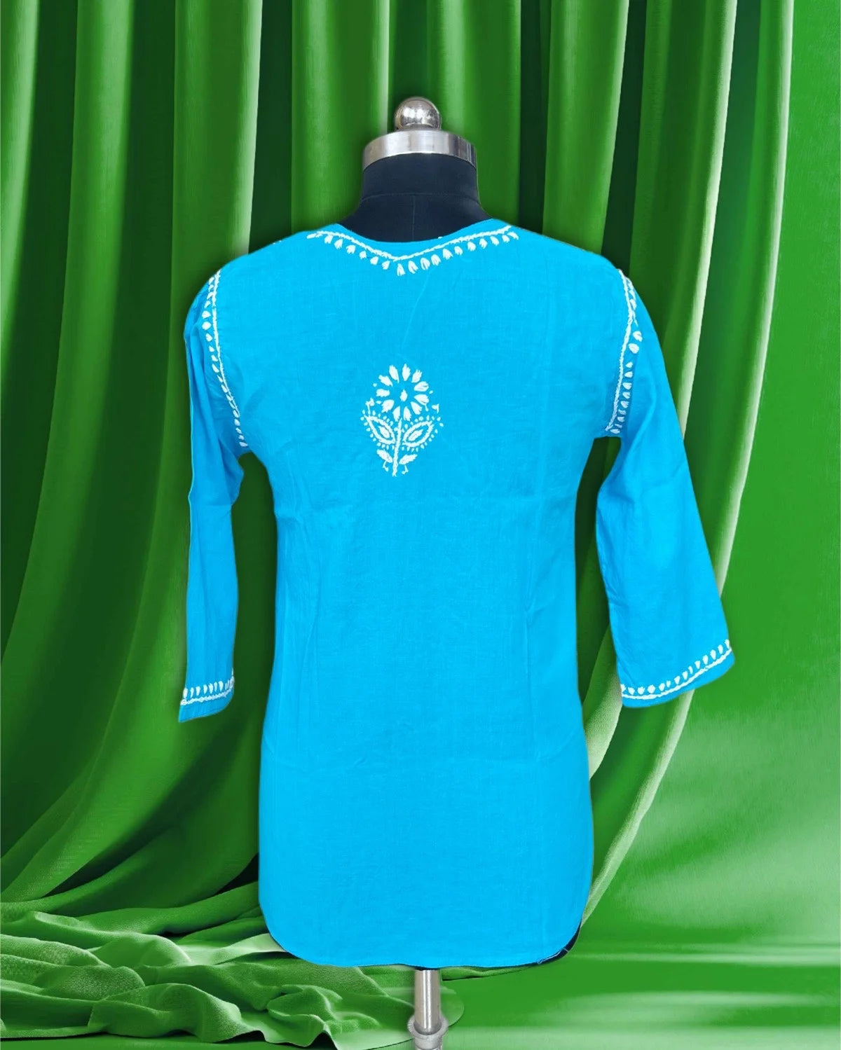 Lucknowi Chikankari Blue Cotton Short Kurti-T000030