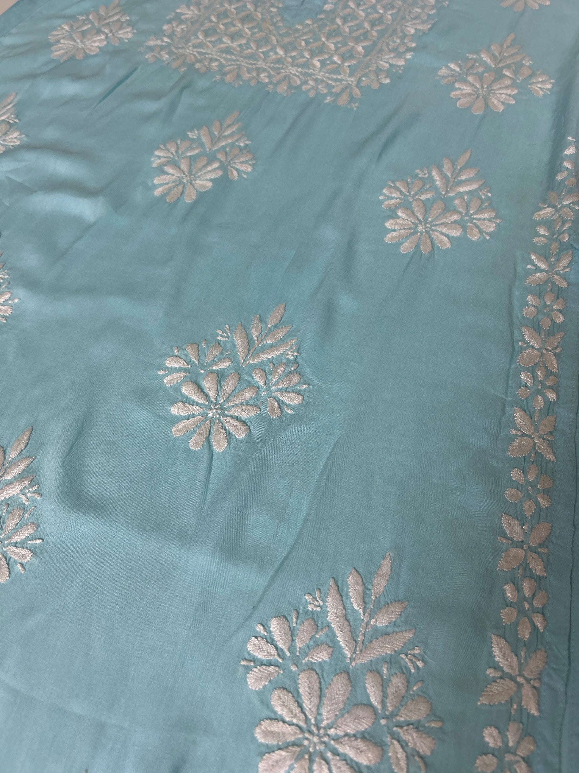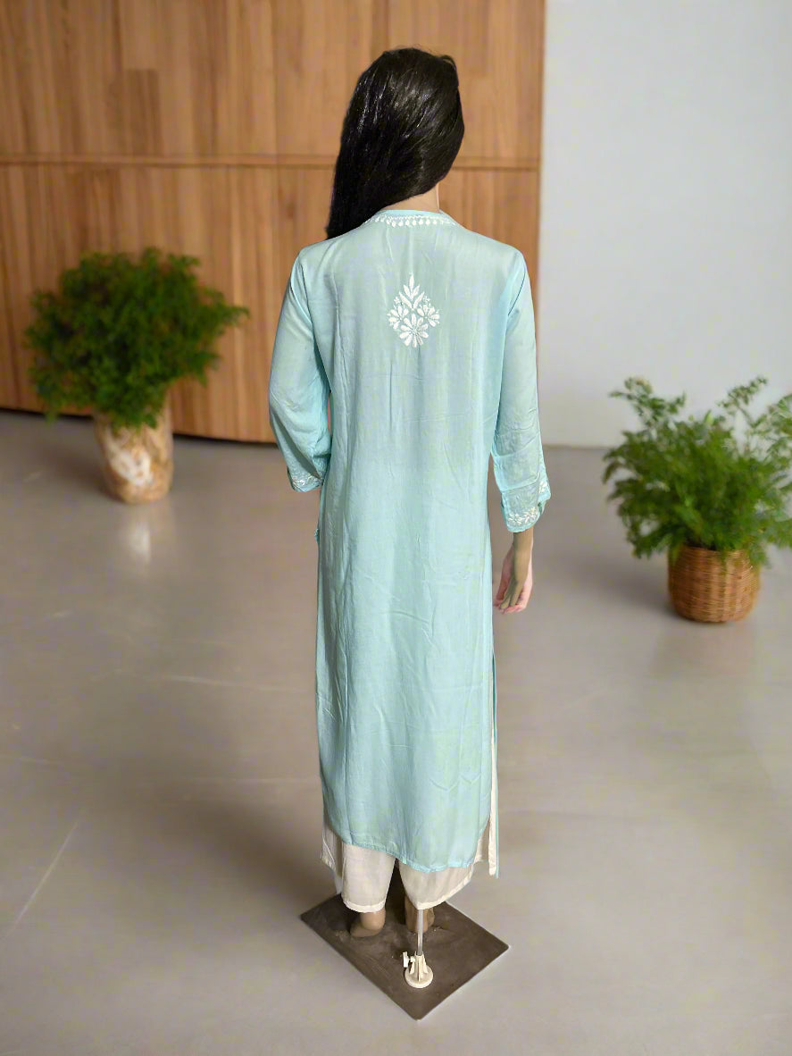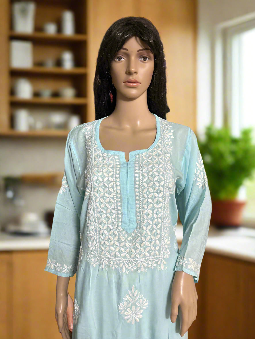 Lucknowi Chikankari Blue Modal Kurti-K60053