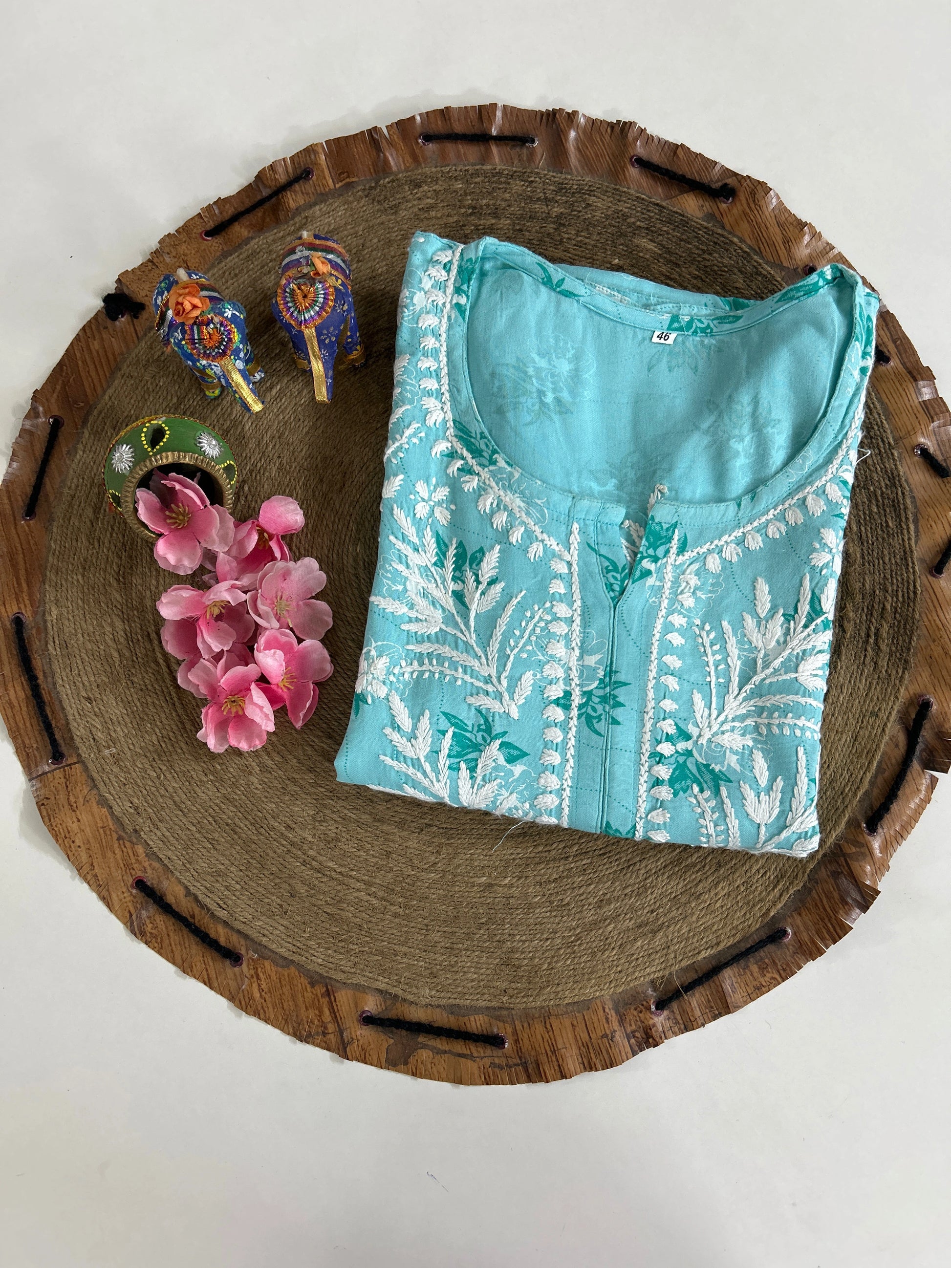 Disclaimer: There might be a slight variation in the actual color of the product due to different screen resolutions. Also, chikankari may vary from the one that displayed due involvement of different artisans in developing a product.