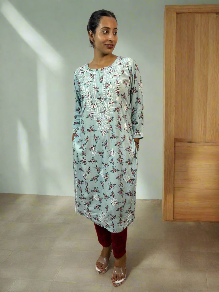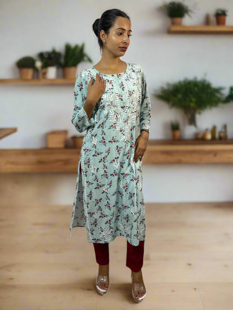 Lucknowi Chikankari Blue Printed Rayon Kurti-K30071