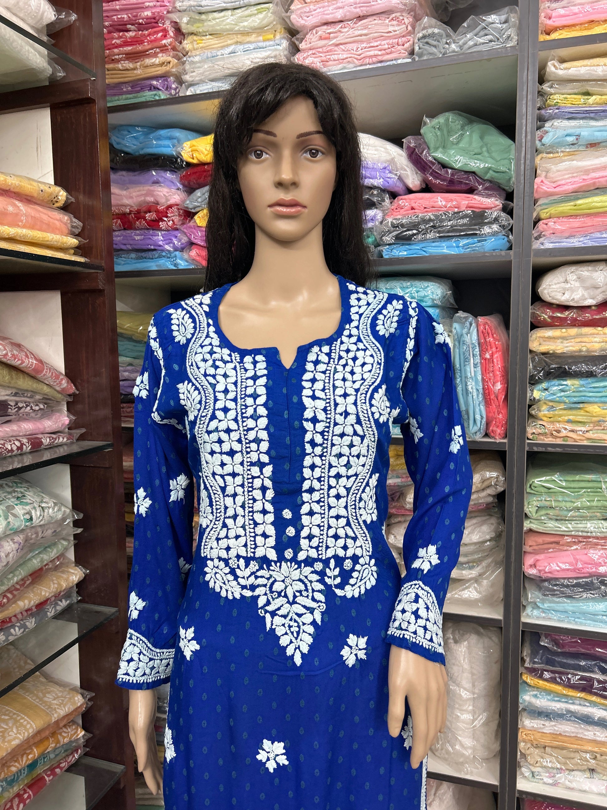 Lucknowi Chikankari Blue Rayon Kurti-K000087