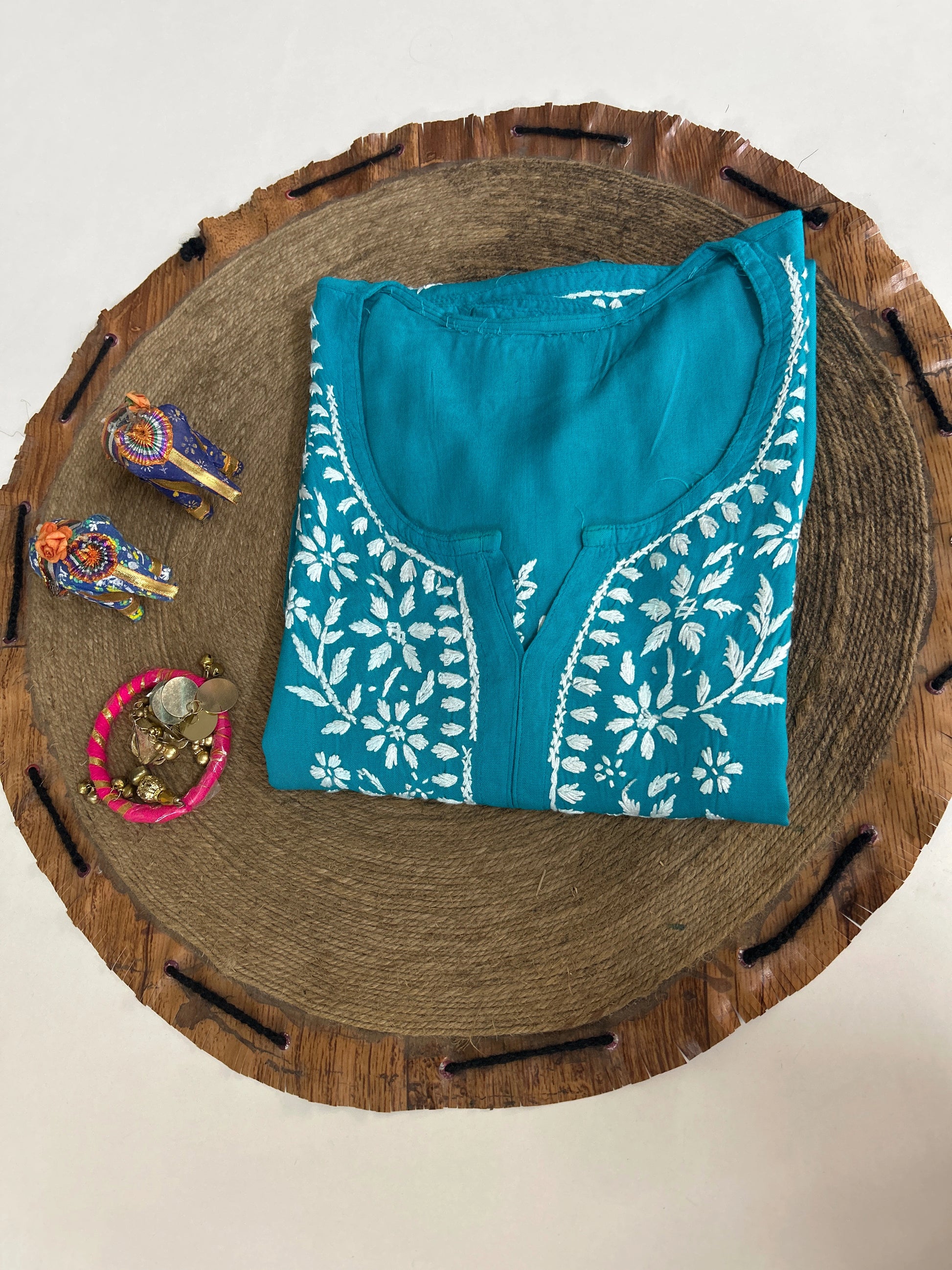 Lucknowi Chikankari Blue Rayon Kurti-K000154