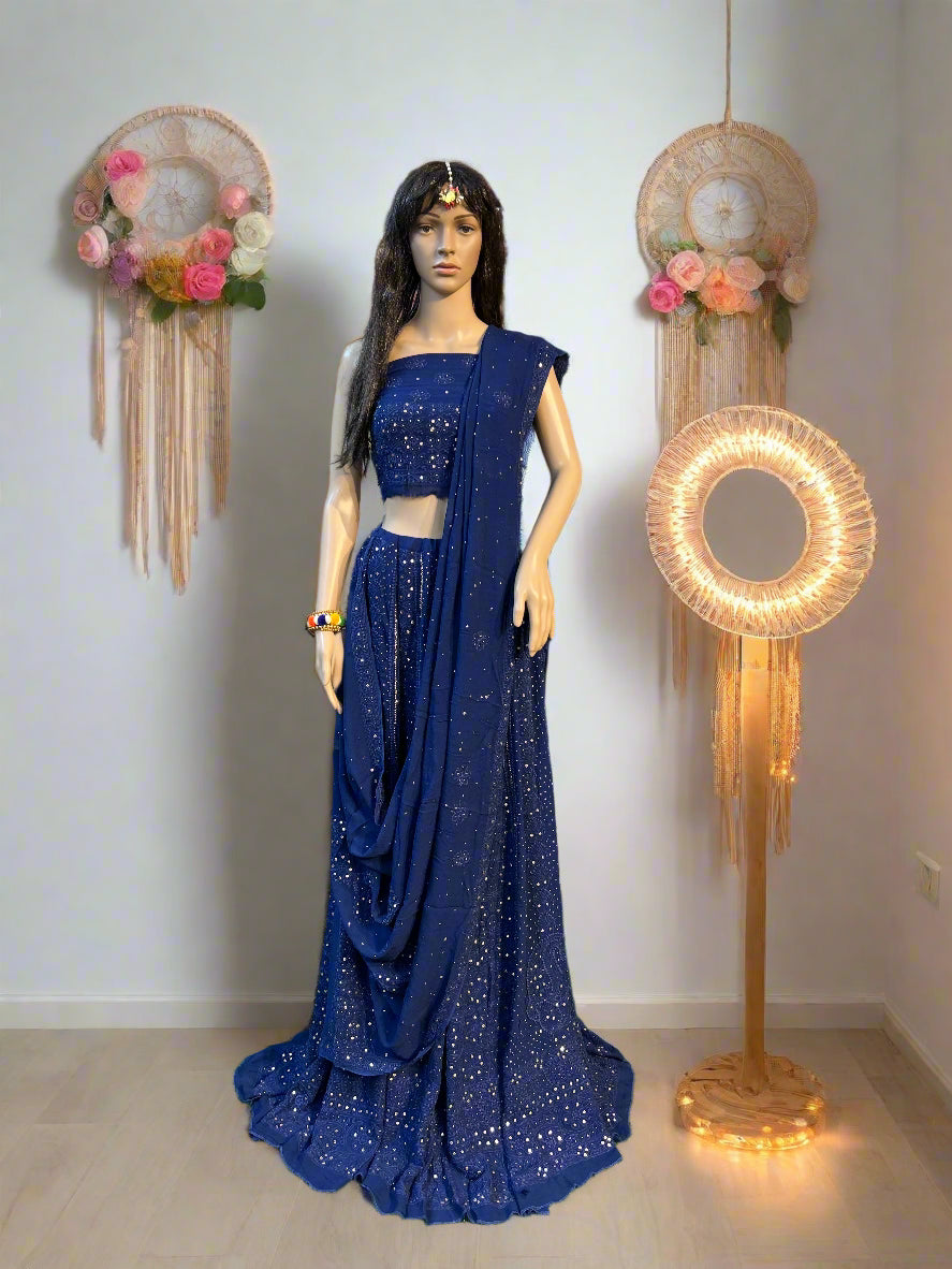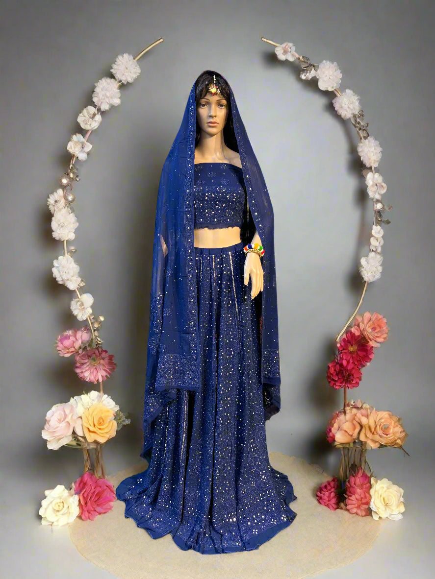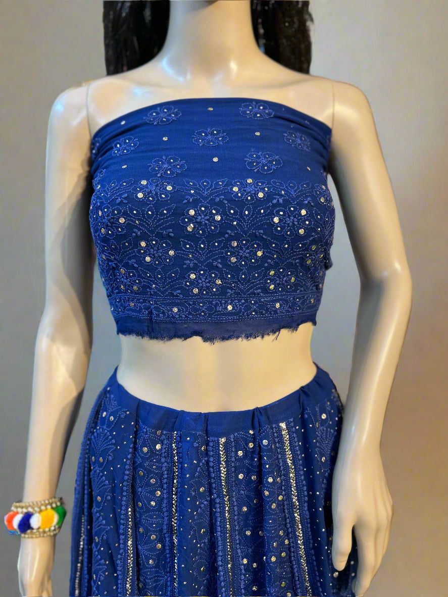 Lucknowi Chikankari Blue Viscose Lehenga-Blouse-Dupatta-PF200001