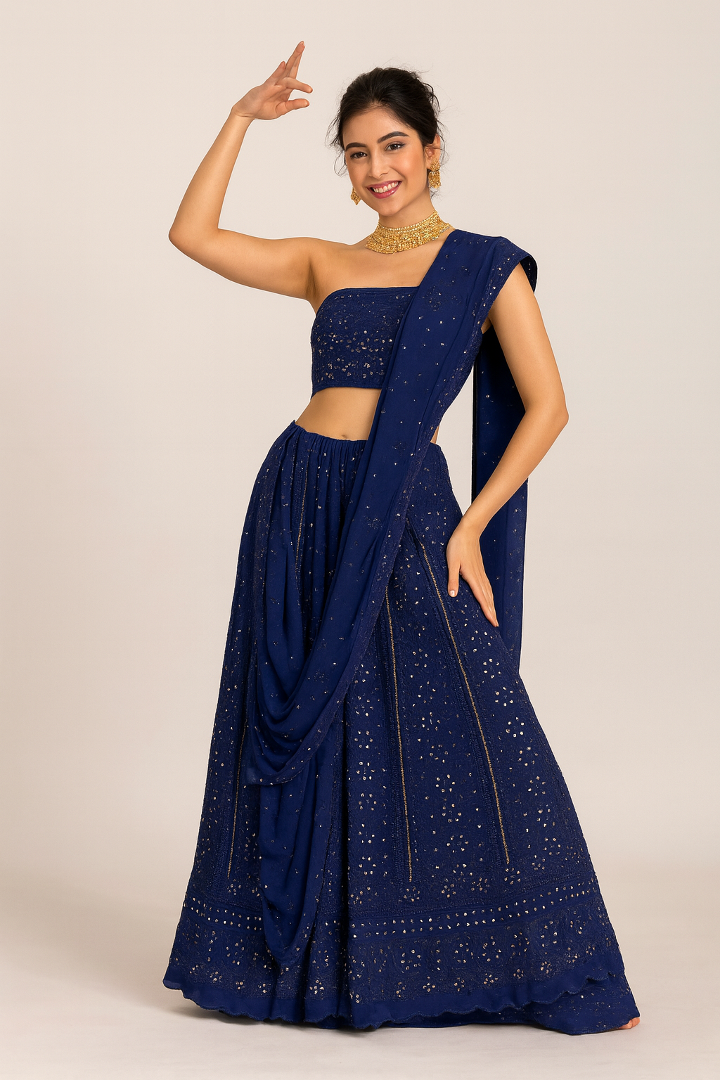 Experience the timeless elegance of the Lucknowi Chikankari Blue Viscose Lehenga set, featuring intricately hand-embroidered blouse, lehenga, and dupatta. Crafted from breathable viscose, this ensemble offers both comfort and sophistication, perfect for formal occasions or cultural celebrations. The exquisite blue hue enhances the delicate chikankari patterns, reflecting traditional artistry with a contemporary appeal. This set flawlessly combines heritage craftsmanship with a refined silhouette, making it an expert choice for those who value quality and style in ethnic wear.
