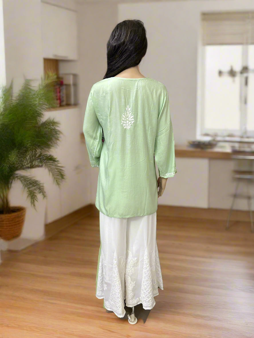 Lucknowi Chikankari Green Rayon Short Kurti-T70001