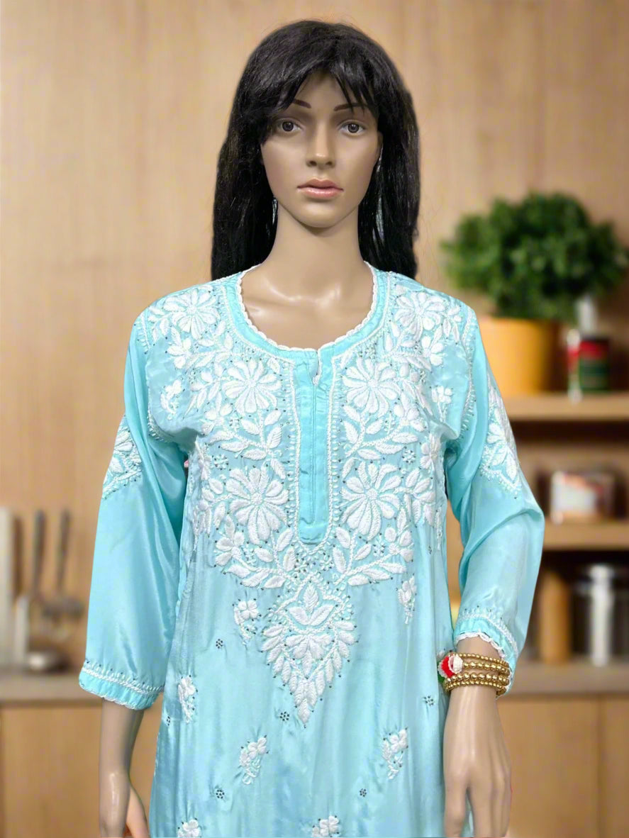 Lucknowi Chikankari Crape Blue Kurti-K000130