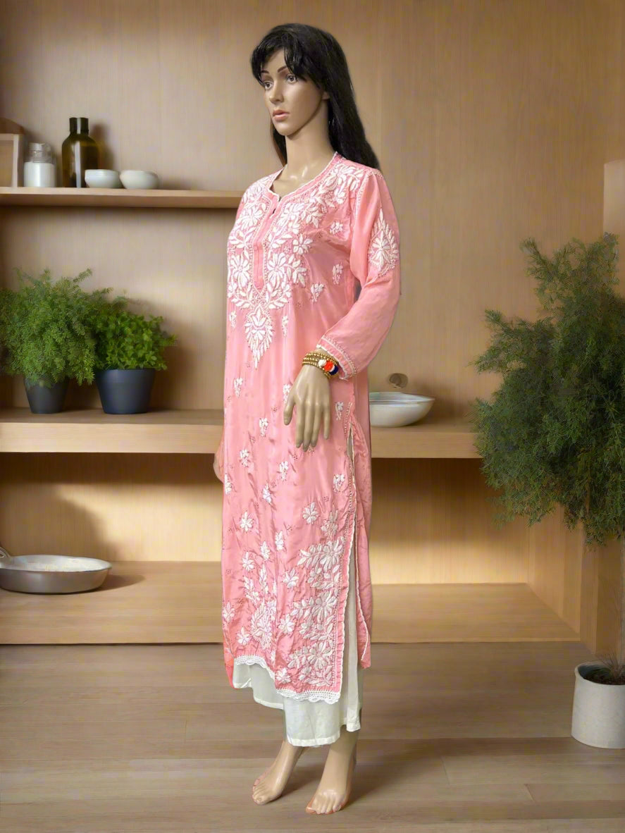 Lucknowi Chikankari Crape Pink Kurti-K000132