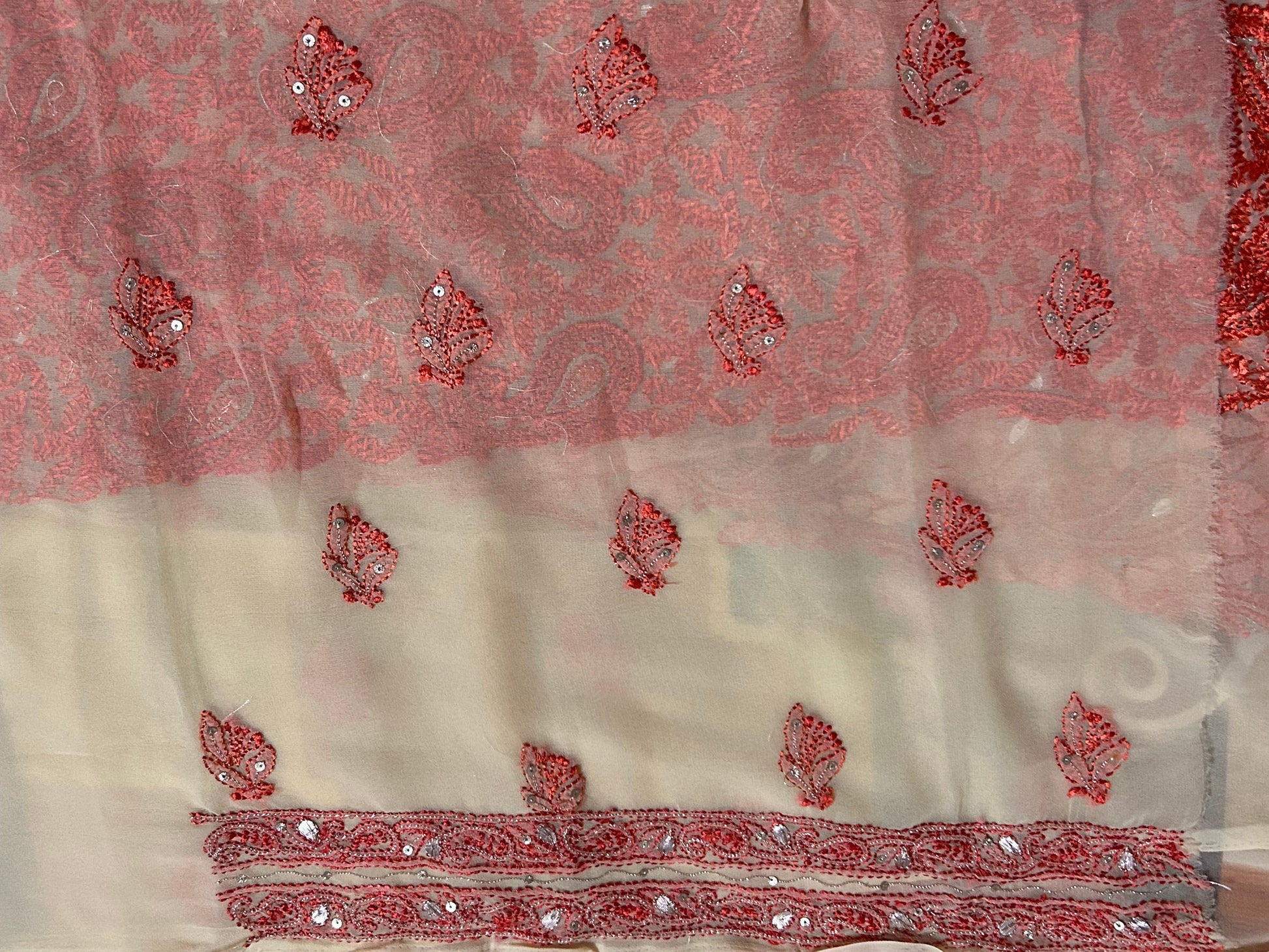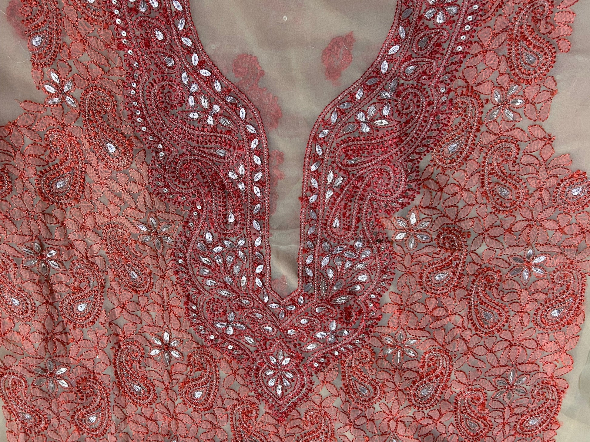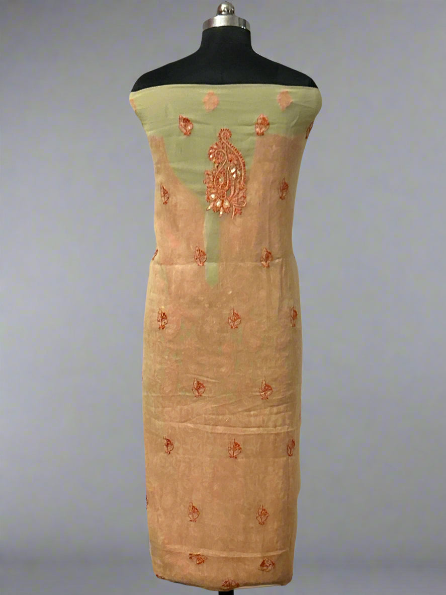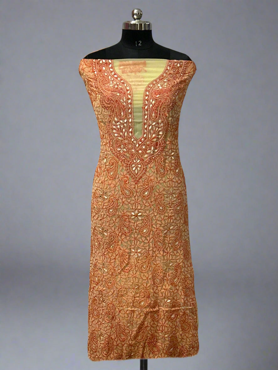 Lucknowi Chikankari Unstitched Fawn Georgette Kurta Fabric-PG100021