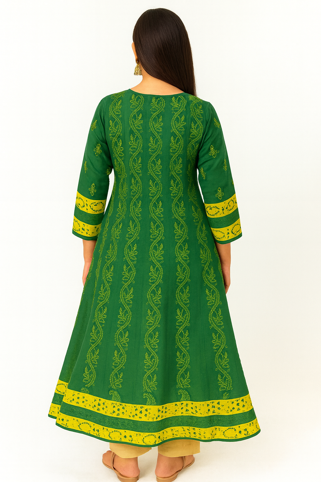 Lucknowi Chikankari Green 'Bahar' Angrakha Styled Anarkali-K30075
