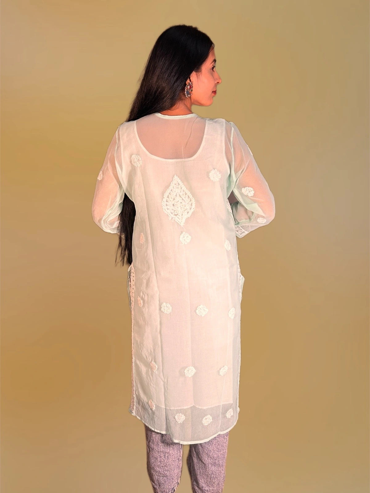 Lucknowi Chikankari Green Georgette Kurti-K000056