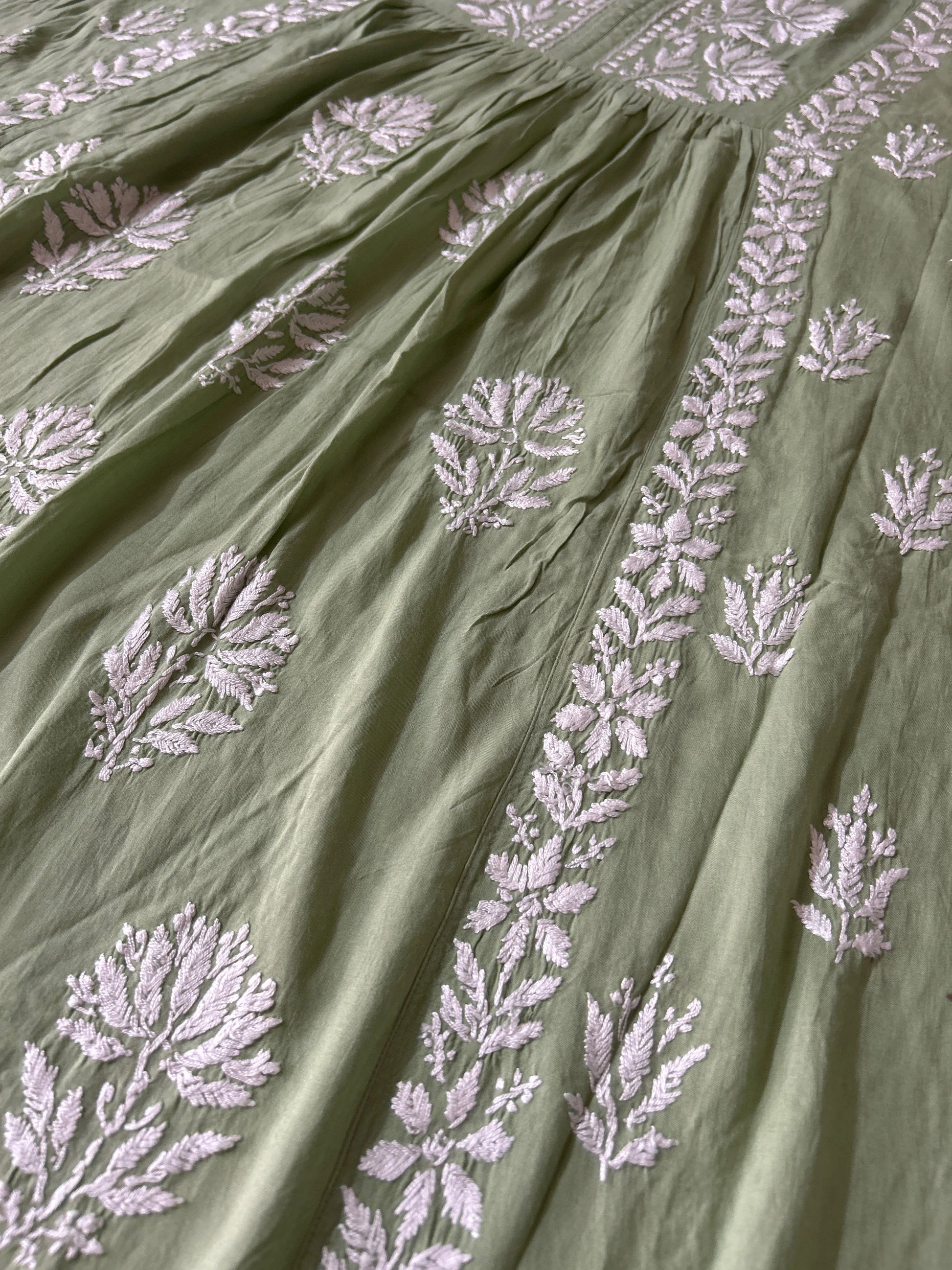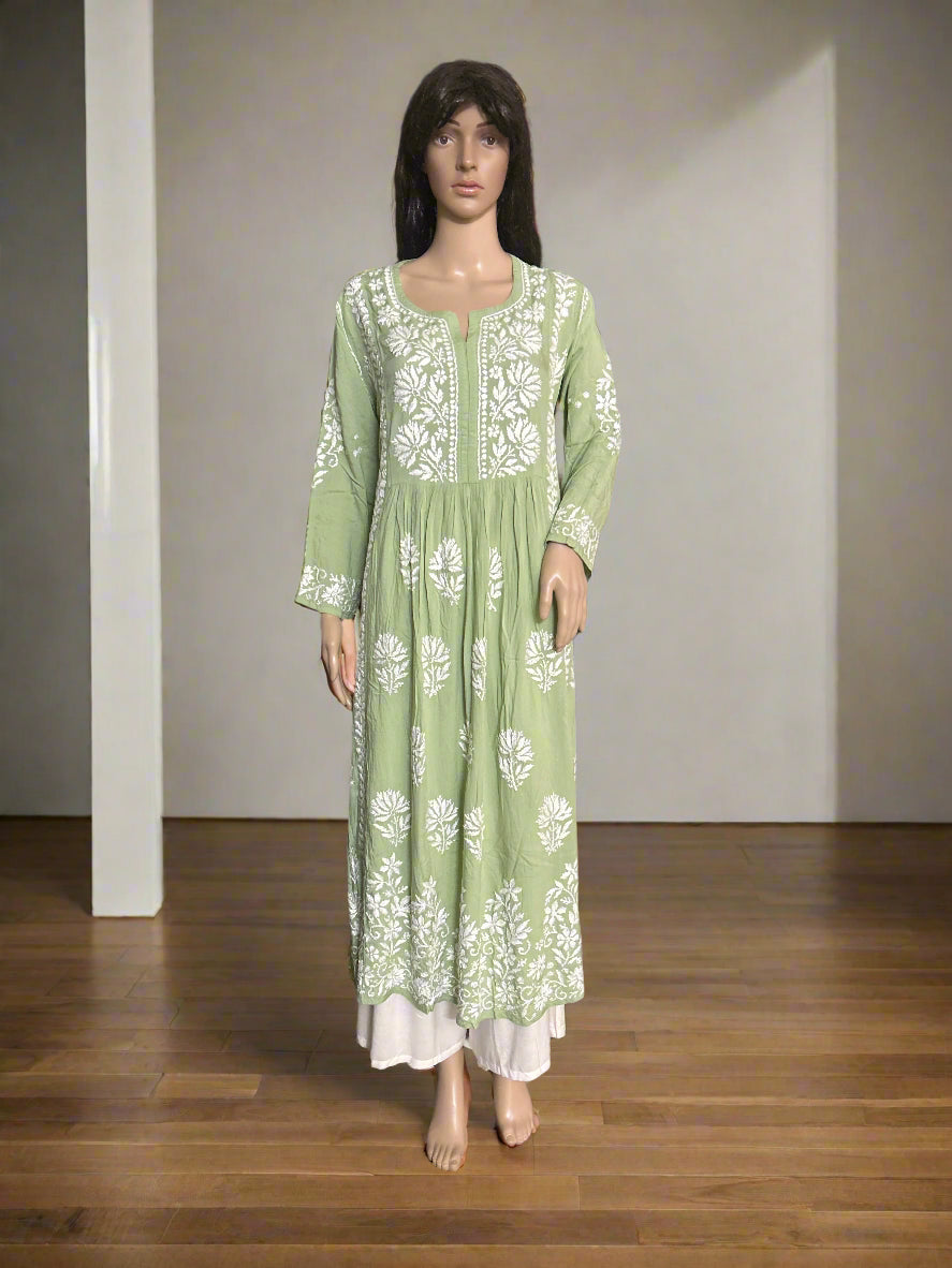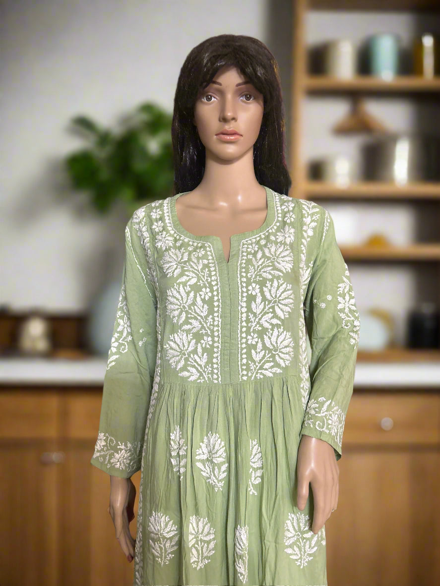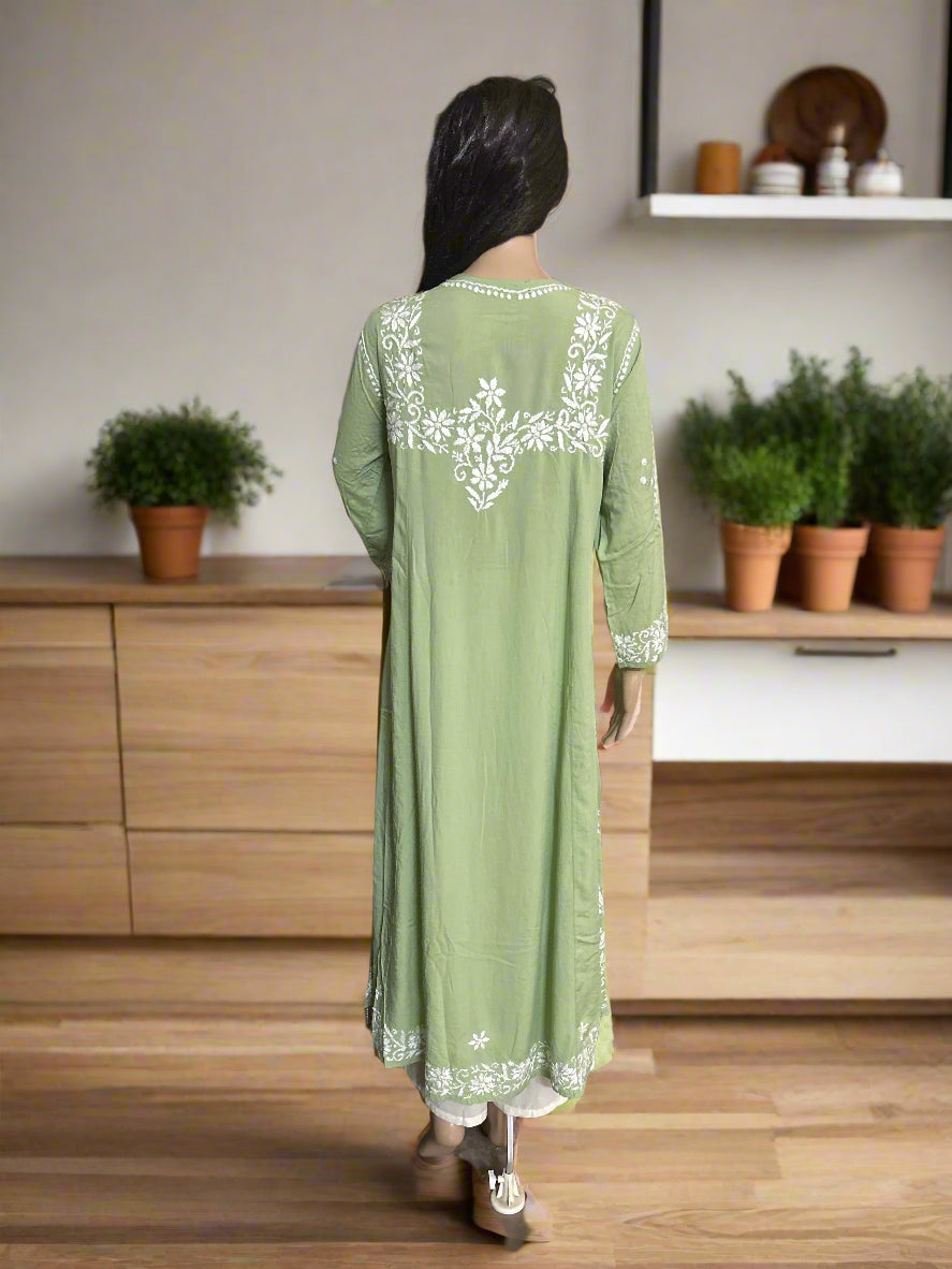 Lucknowi Chikankari Green Modal Kurti-K60054