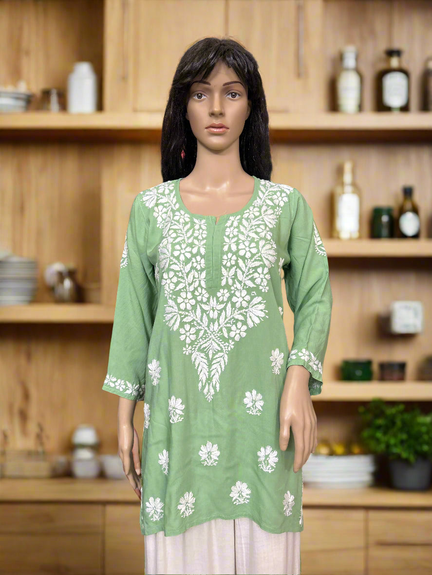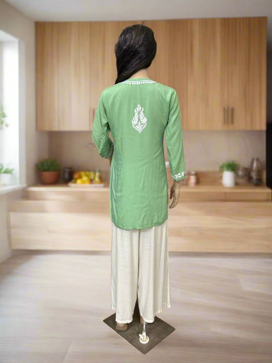 Lucknowi Chikankari Green Modal Short Kurti-T30006