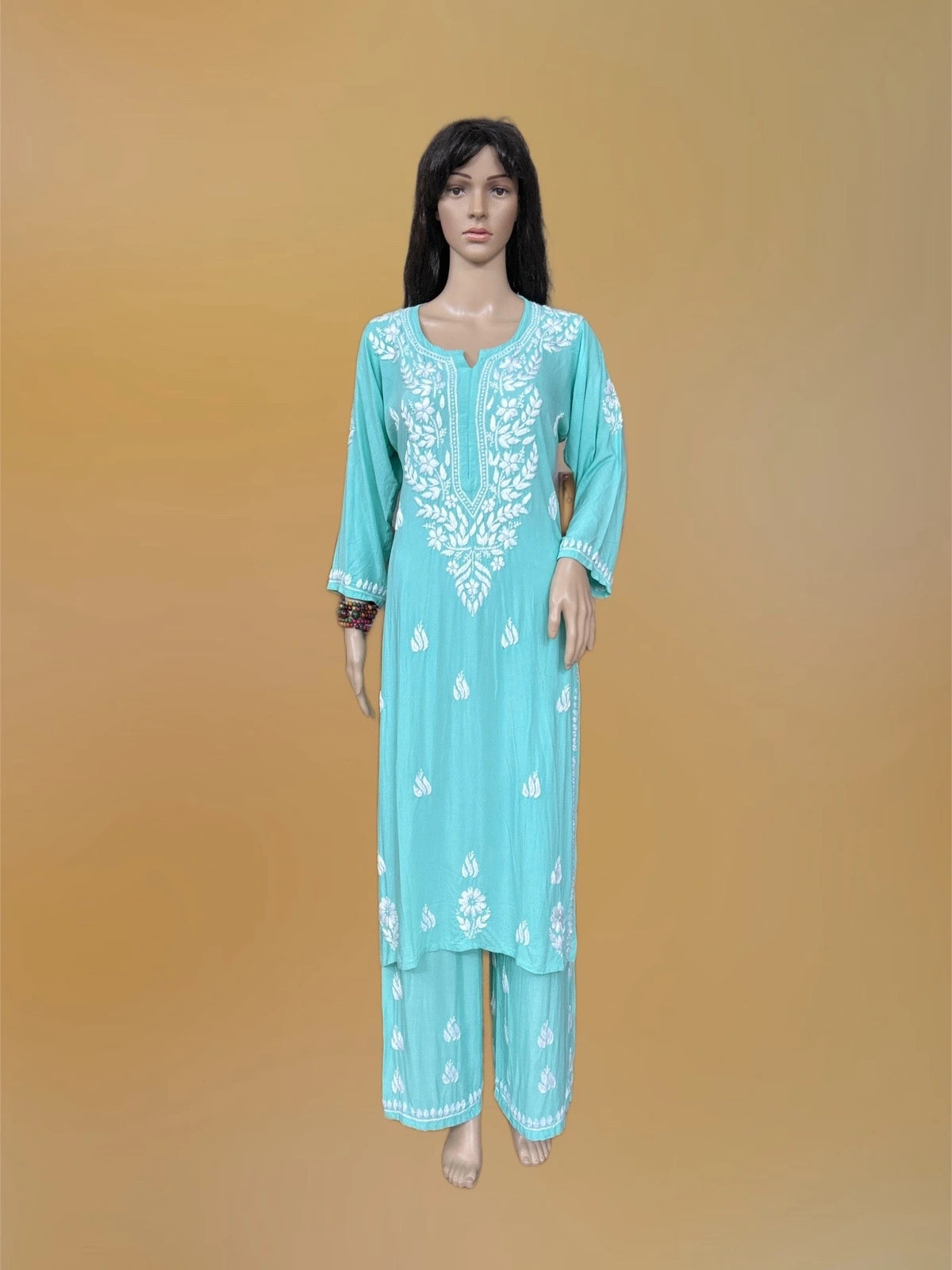Lucknowi Chikankari Green Rayon Kurta Bottom-Kb00002