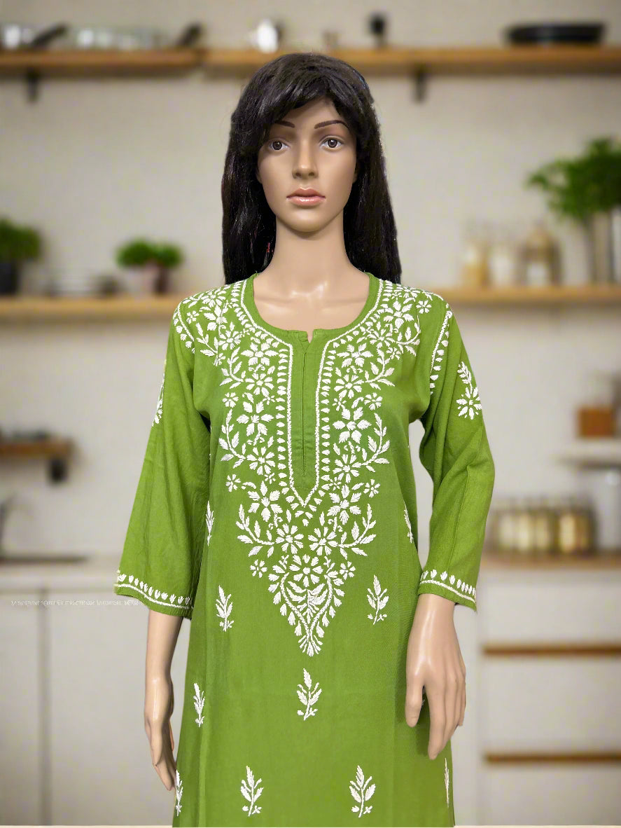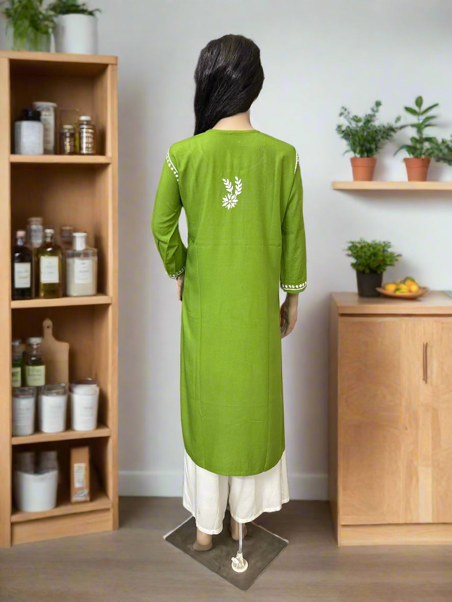Lucknowi Chikankari Green Rayon Kurti-K50080