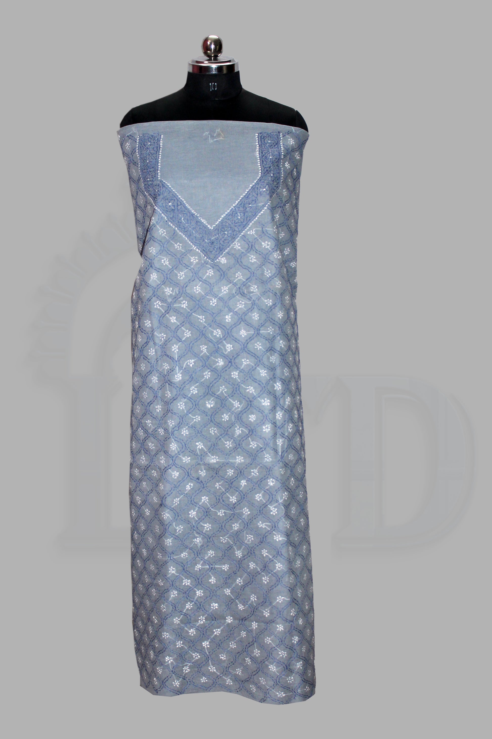Lucknowi Chikankari Unstitched Grey Cotton Kurta-bottom Fabric-U20003