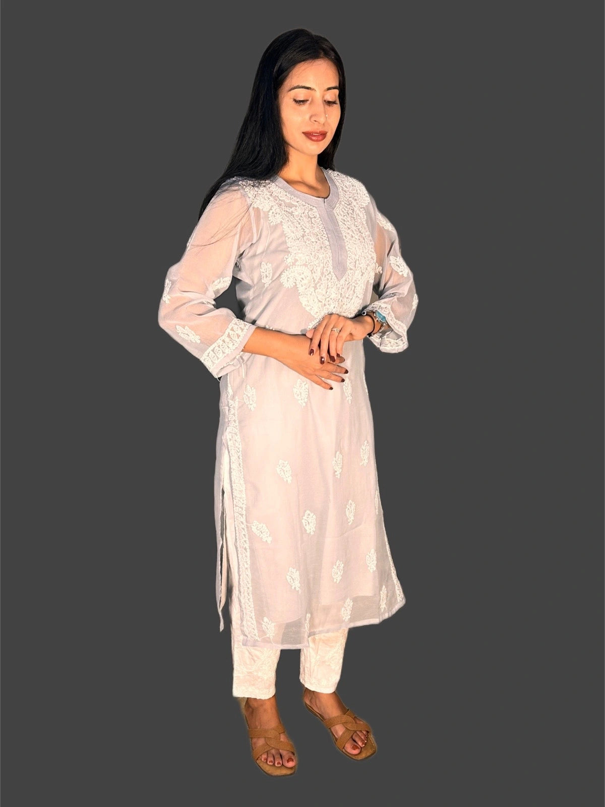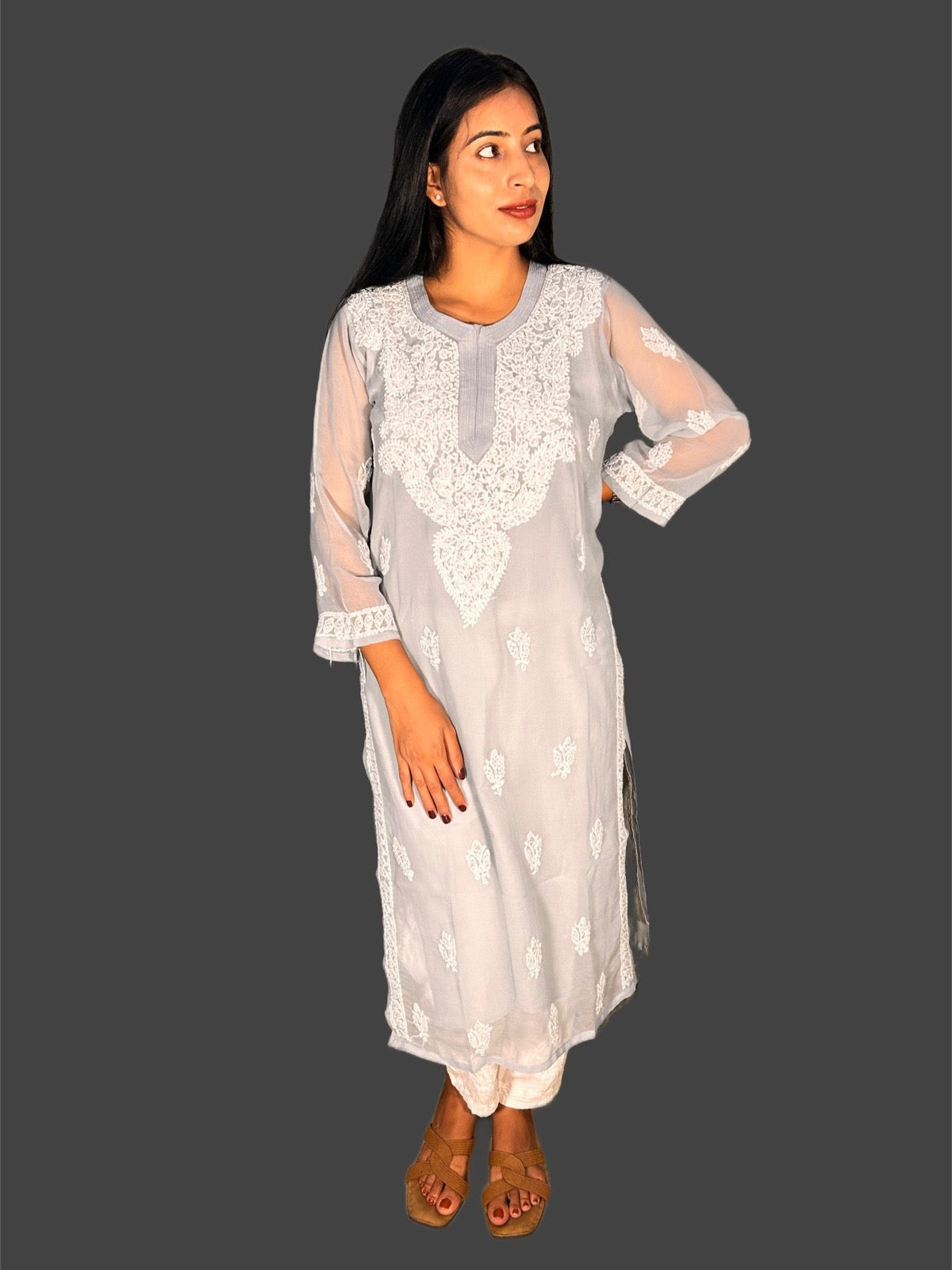 Lucknowi Chikankari Grey Georgette Kurti-K000044