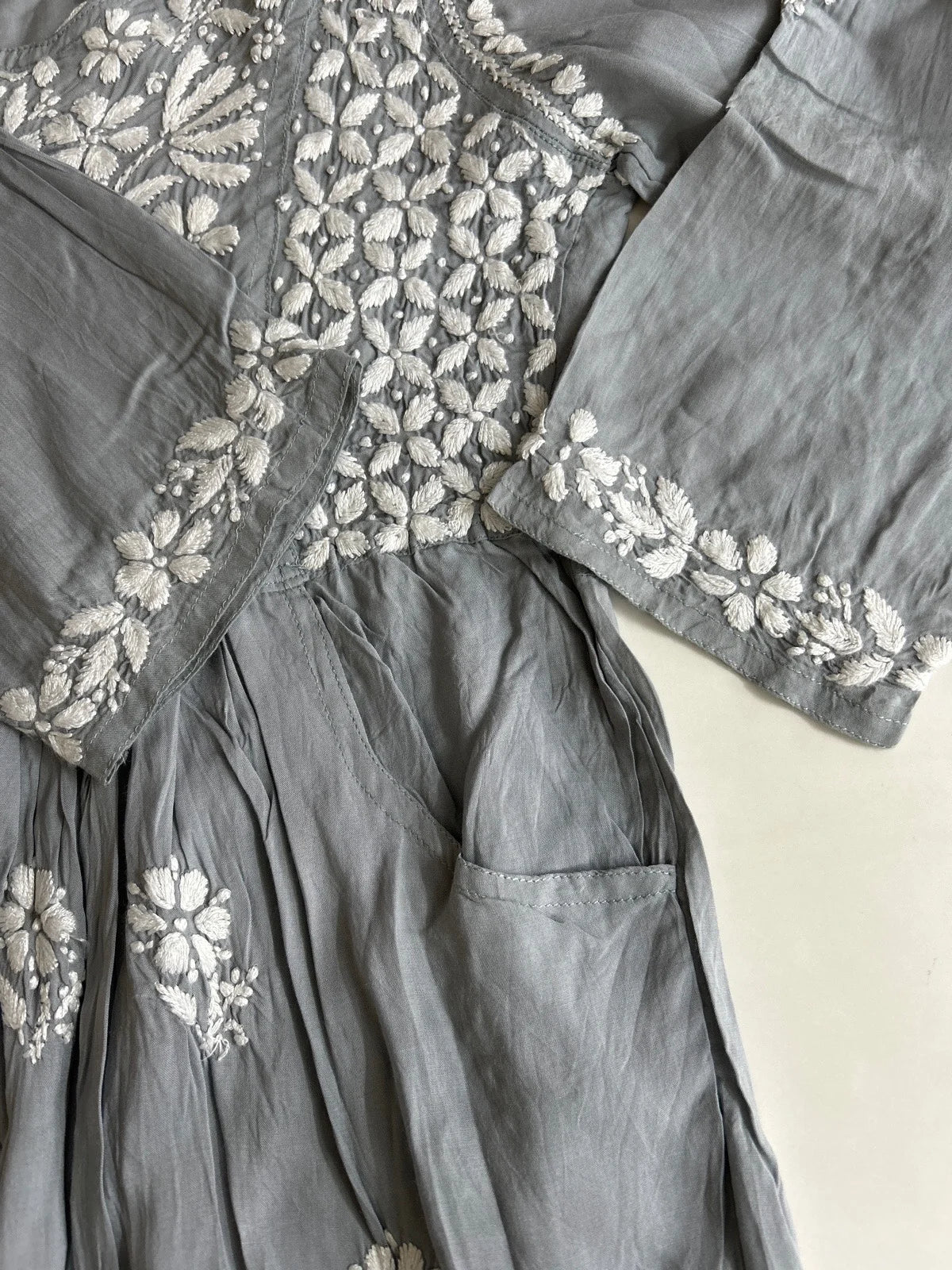 Lucknowi Chikankari Grey Modal Short Kurti-T000032