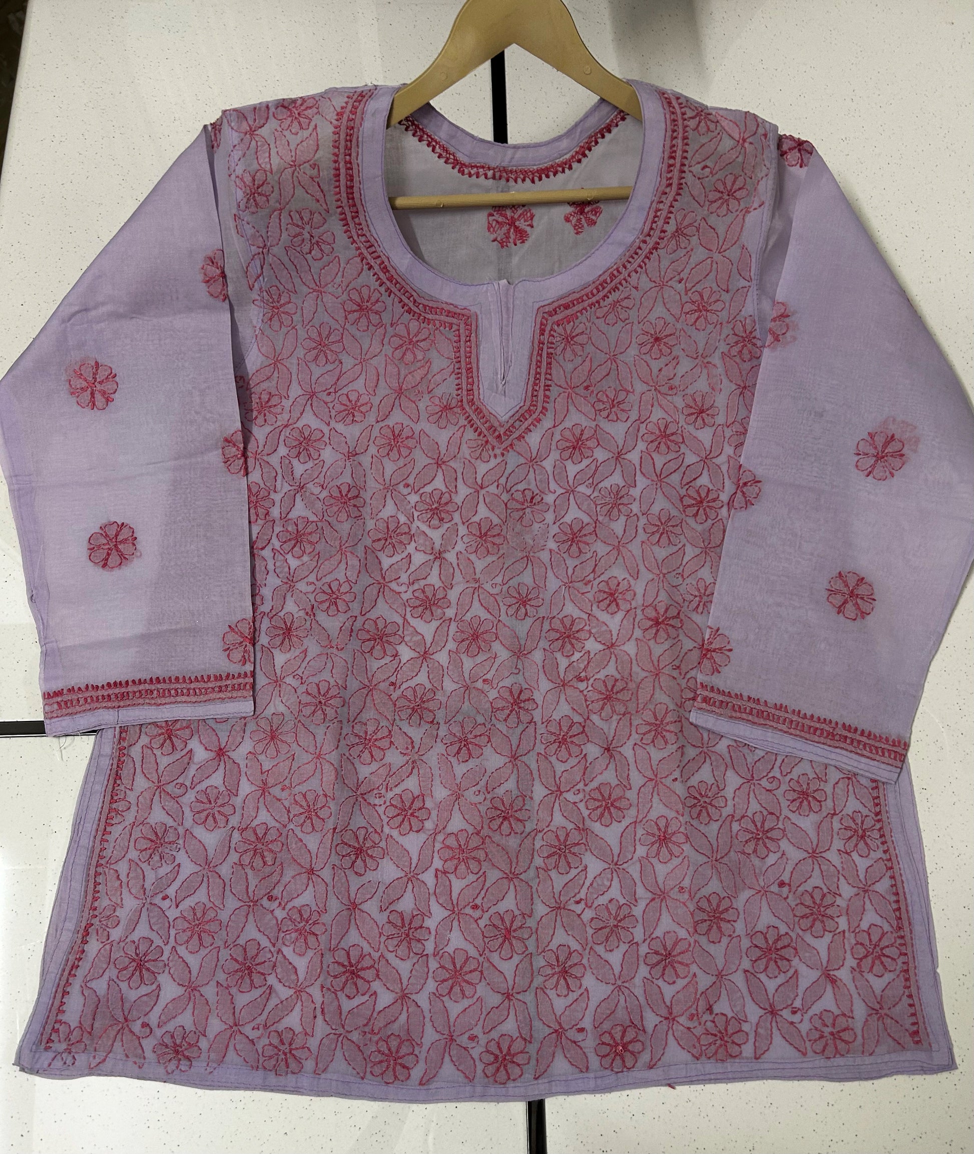 Lucknowi Chikankari Lavender 'Jamuni' Cotton Short Kurti-T50024
