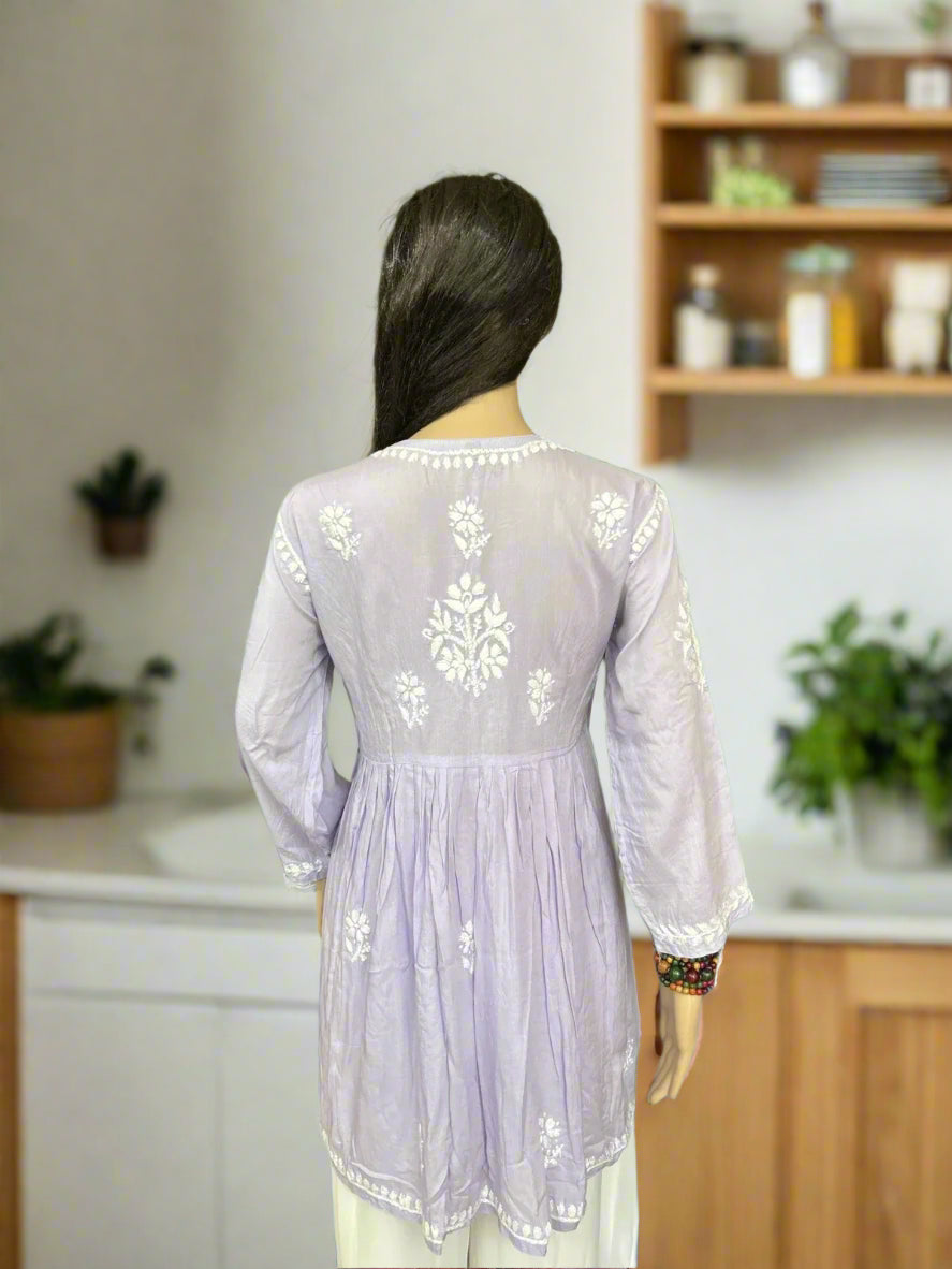 Lucknowi Chikankari Lavender Modal Short Kurti-T000035