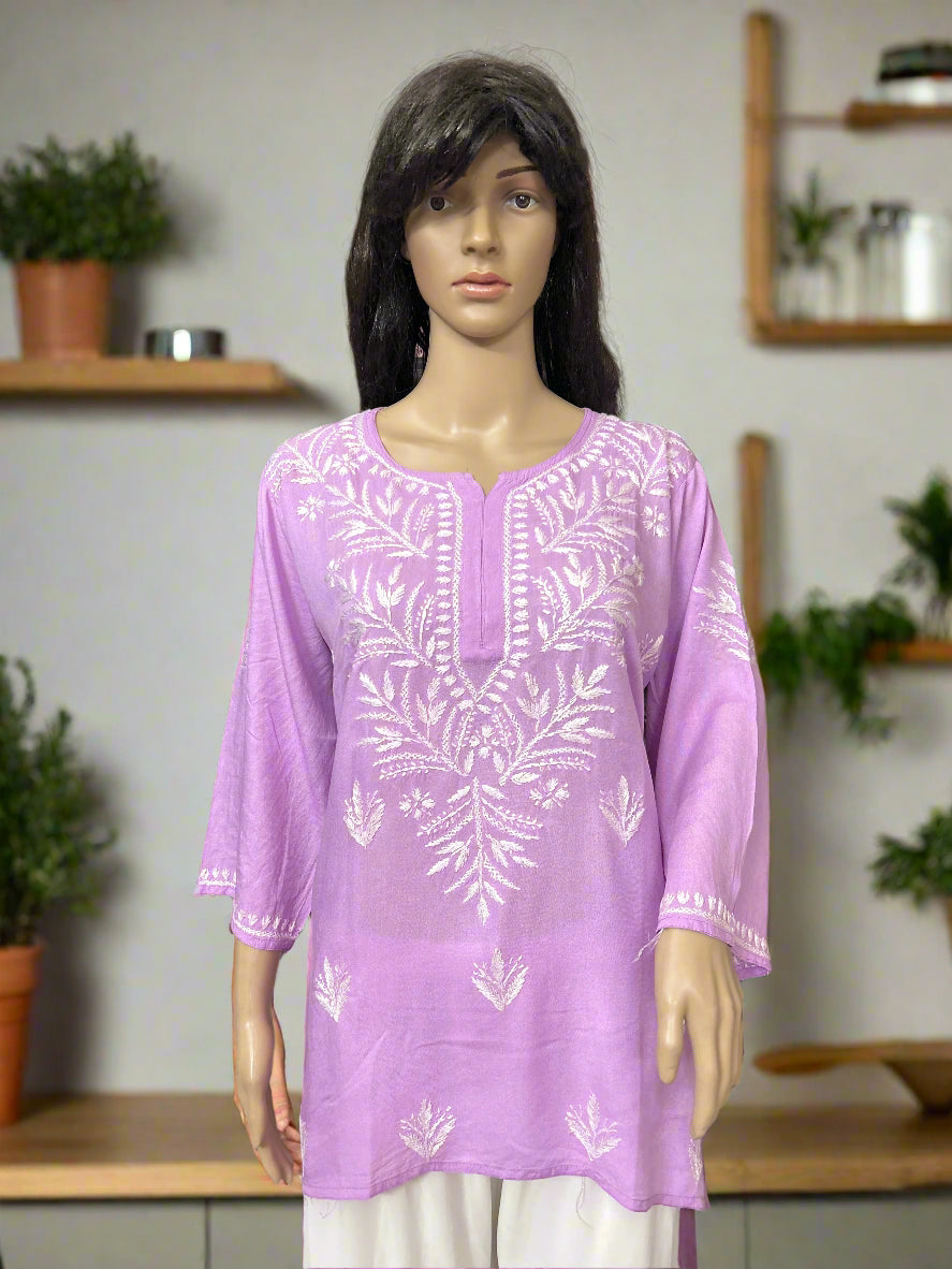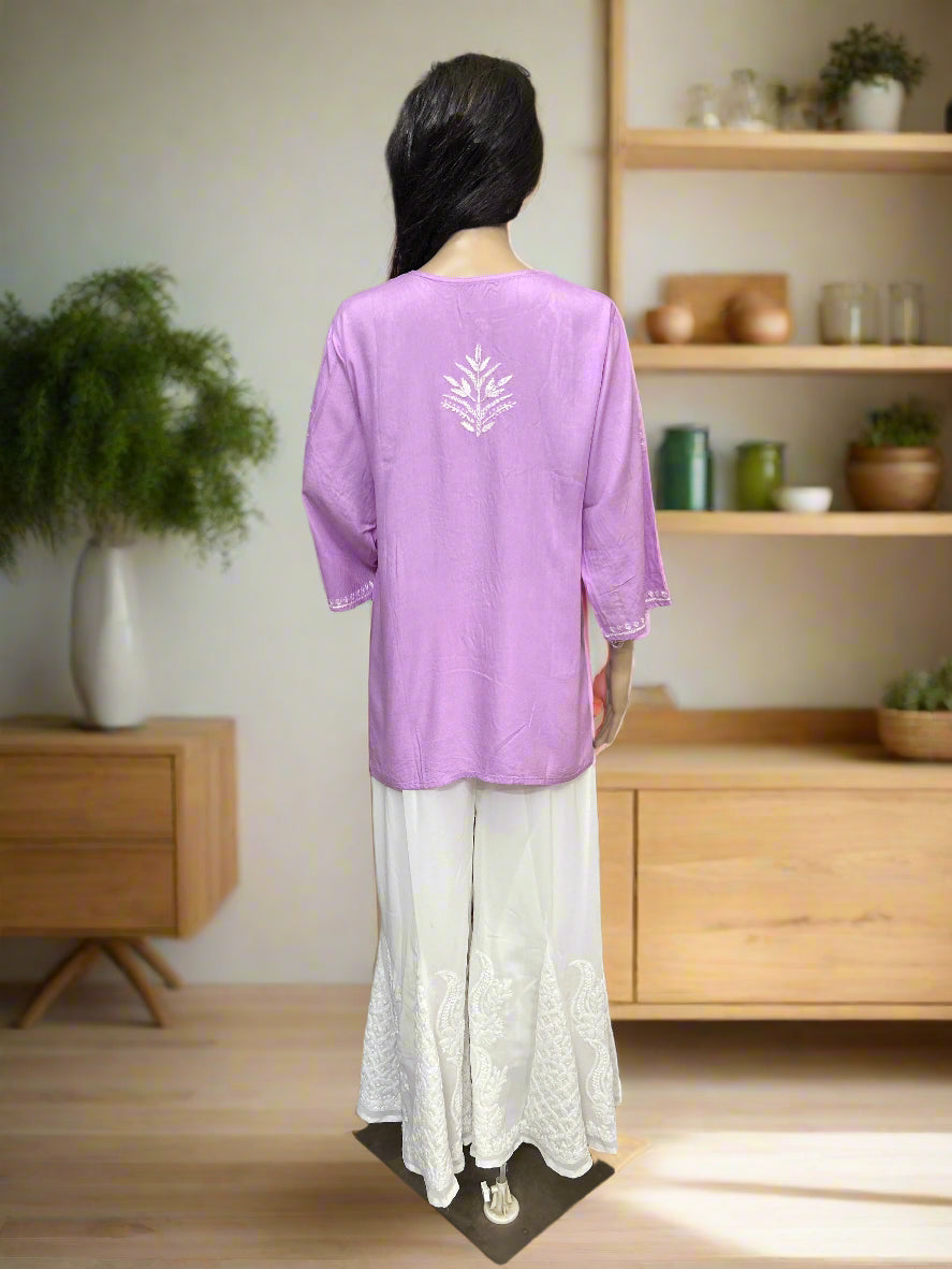 Lucknowi Chikankari Lavender Rayon Short Kurti-T000070