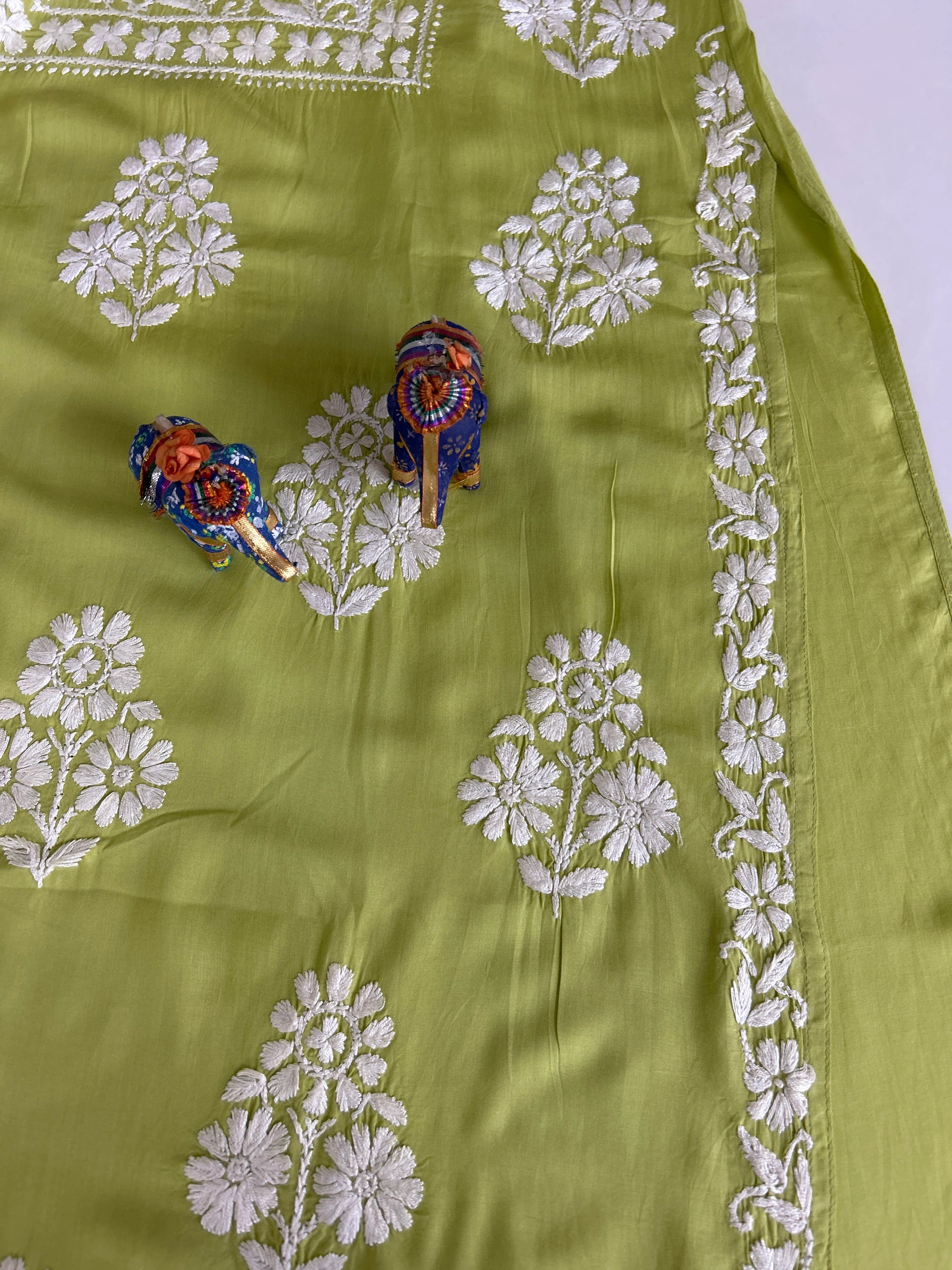 Lucknowi Chikankari Lime Green 'Bahar' Modal Kurti-K70012