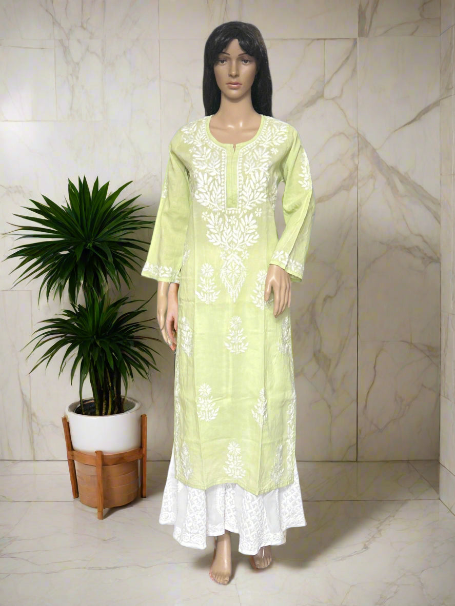 Lucknowi Chikankari Lime Green Cotton Kurti-K000106