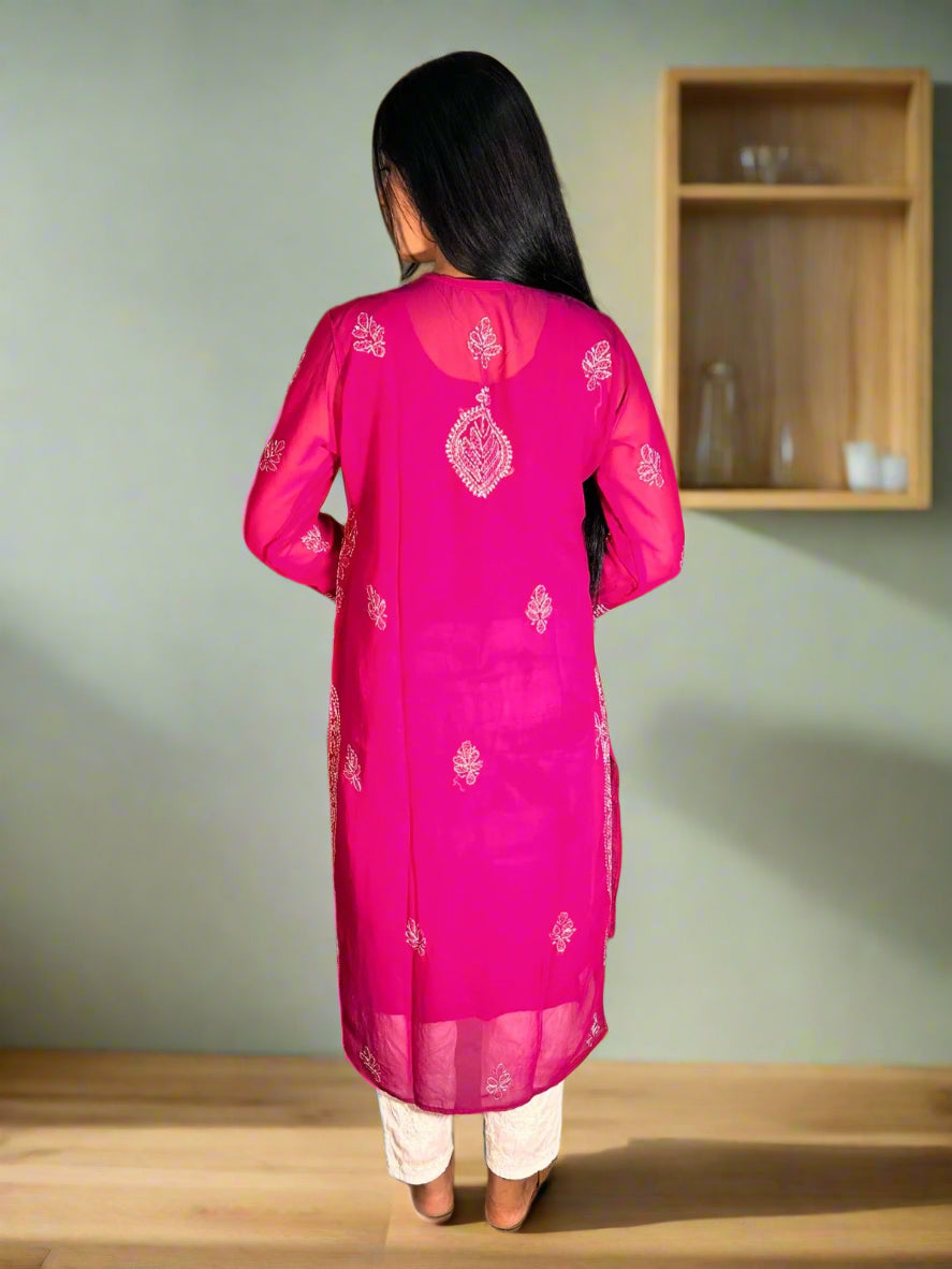 Lucknowi Chikankari Magenta Georgette Kurti-K000034