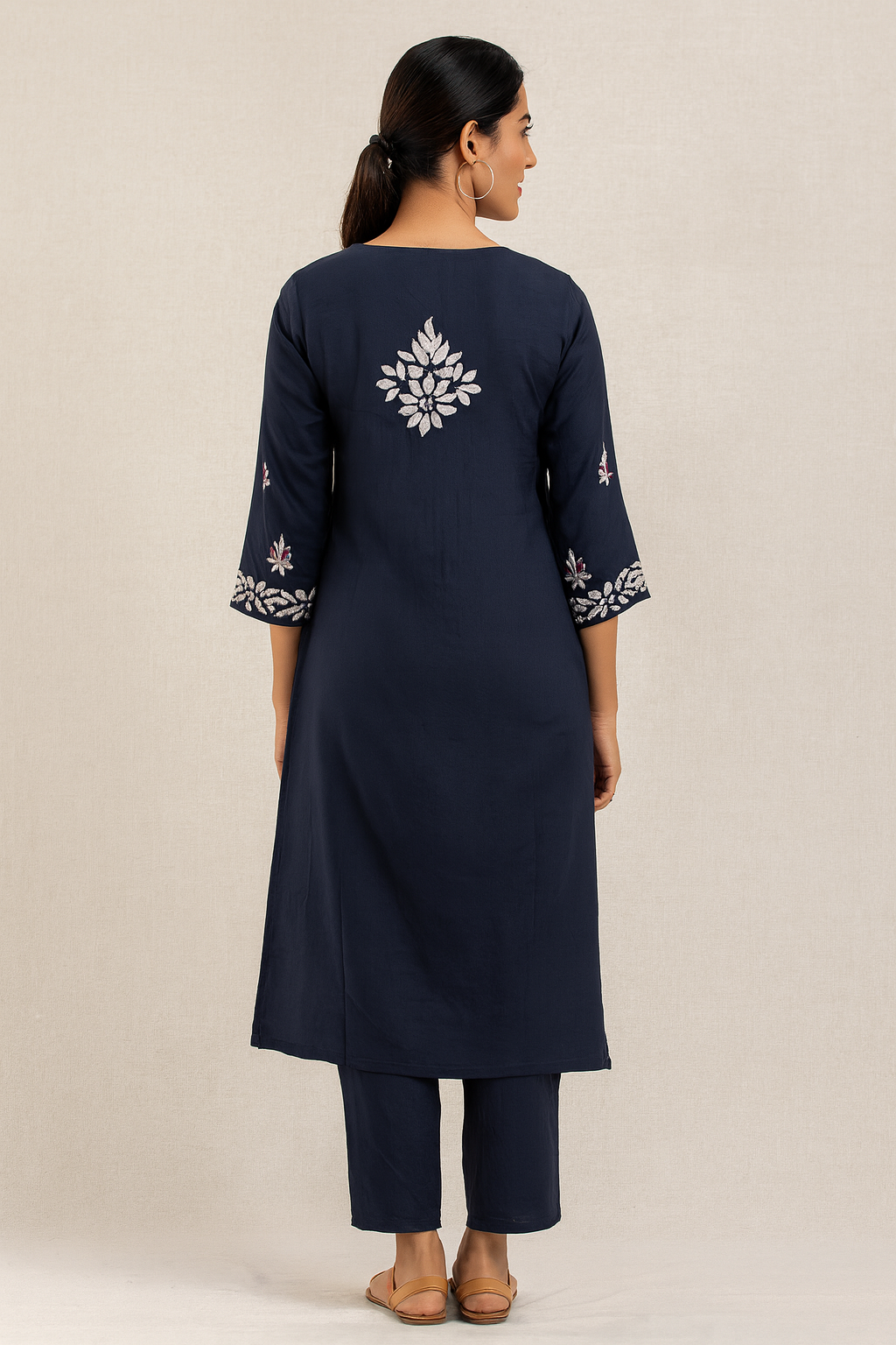 Lucknowi Chikankari Navy Blue 'Aab-e-Asmaan' Modal Kurti-K40092