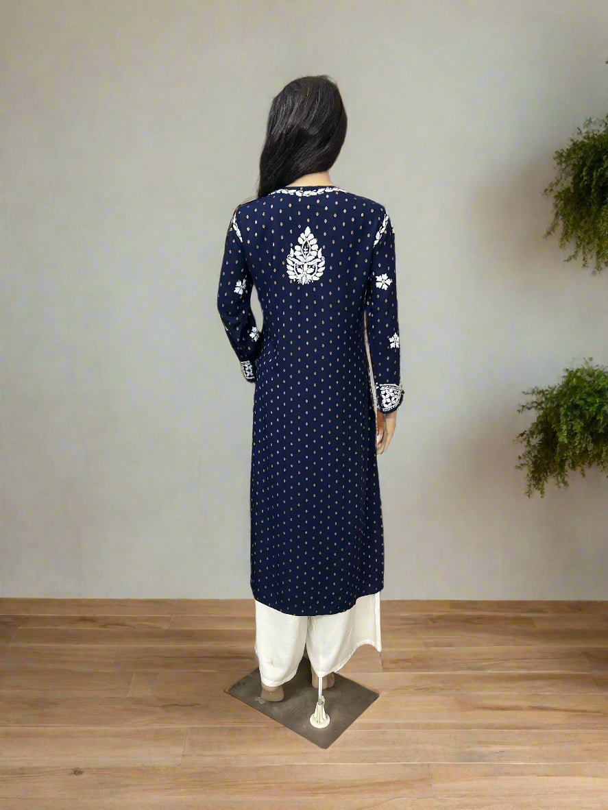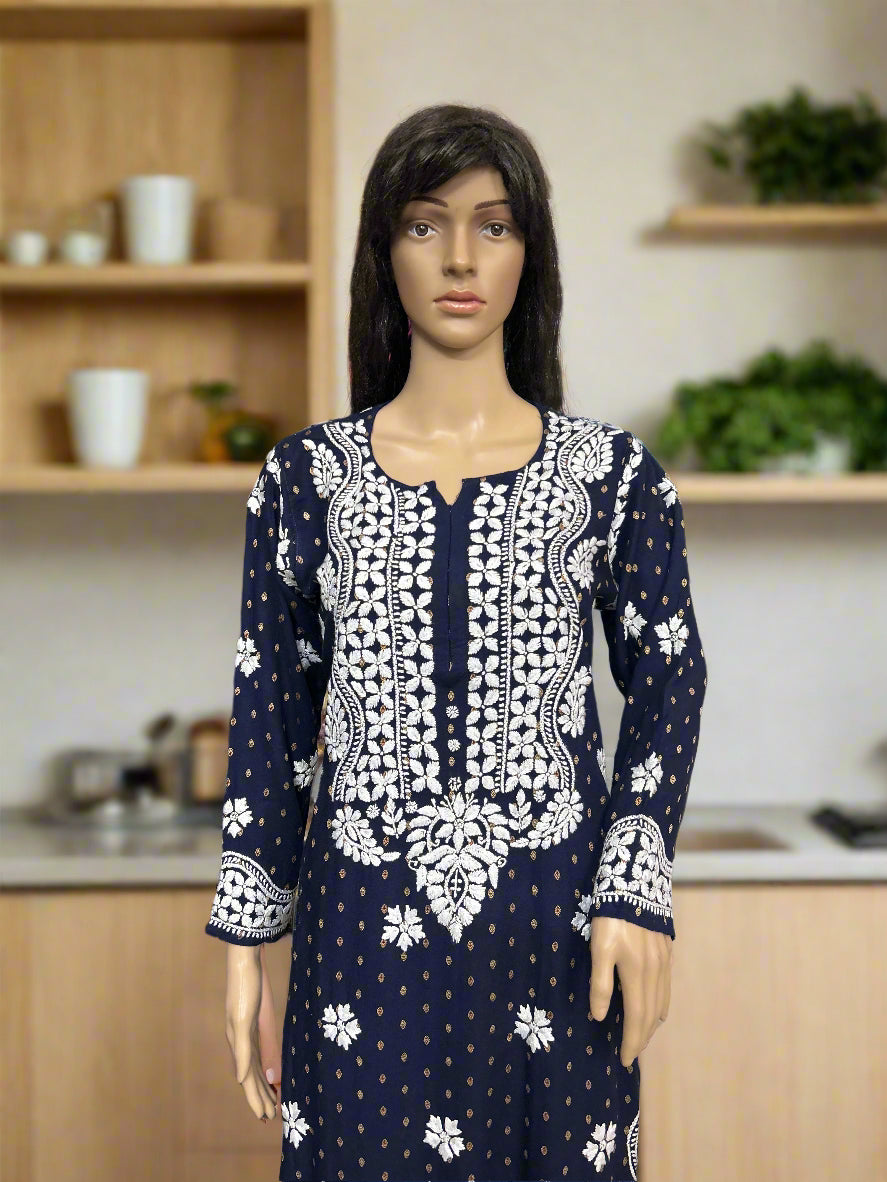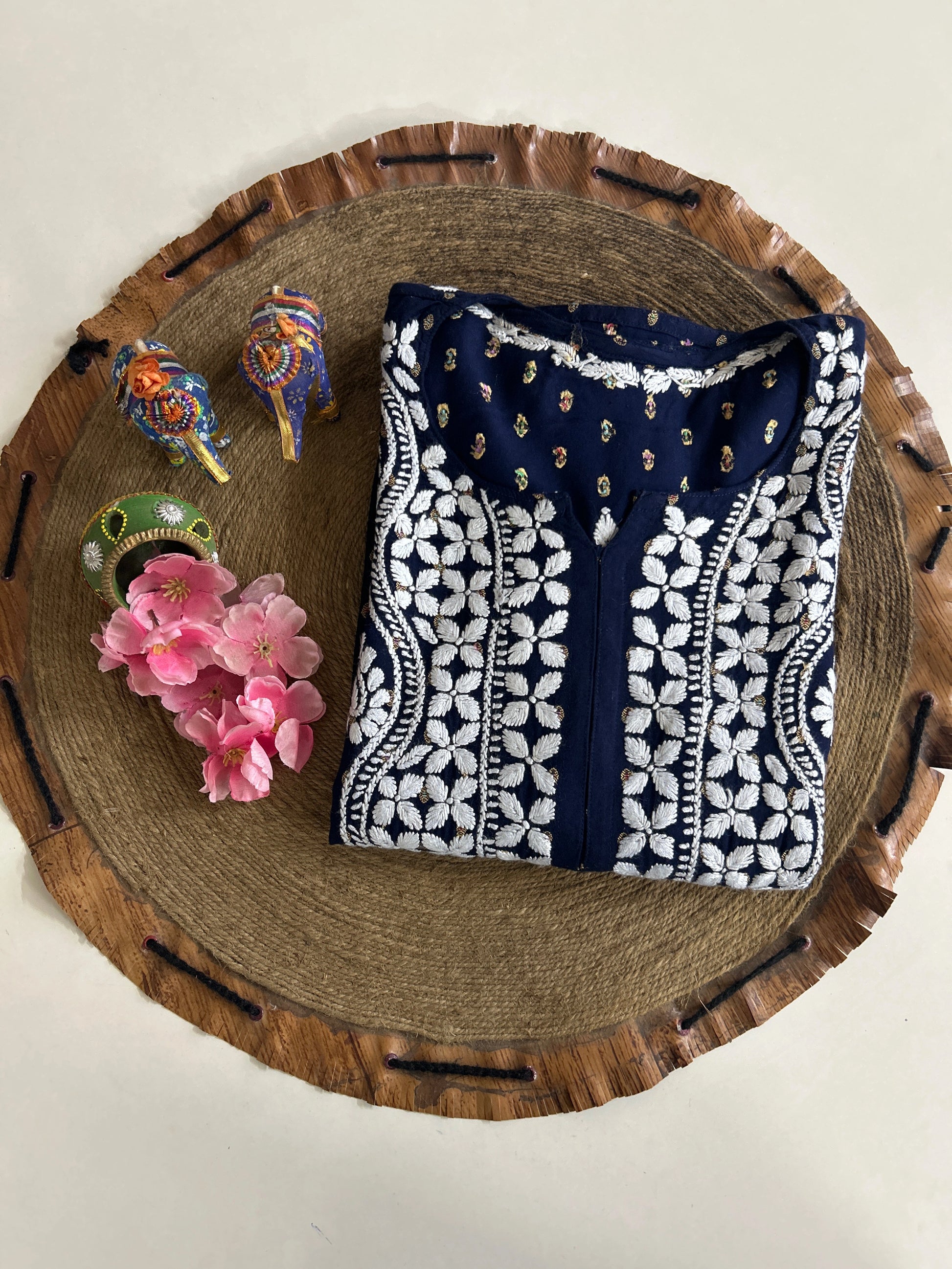 Lucknowi Chikankari Navy Blue Rayon Kurti-K000086