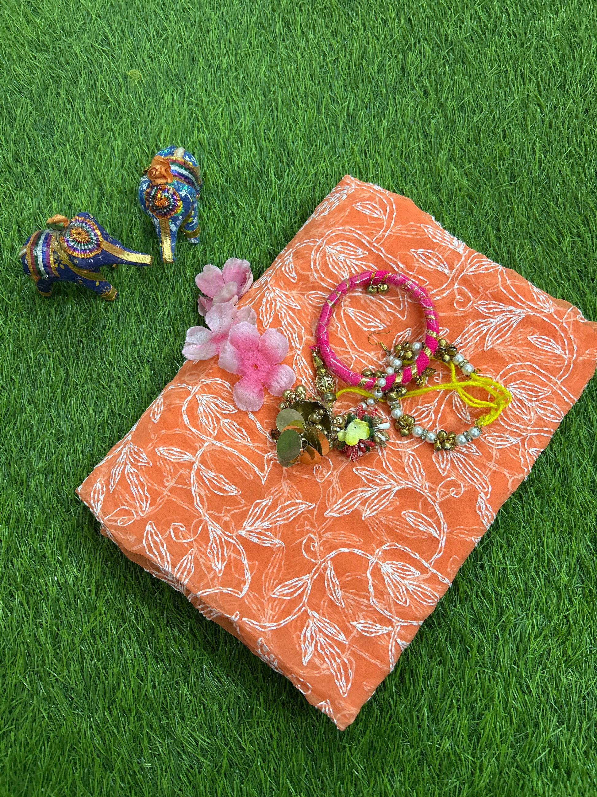 Lucknowi Chikankari Orange Georgette Dupatta-D00001