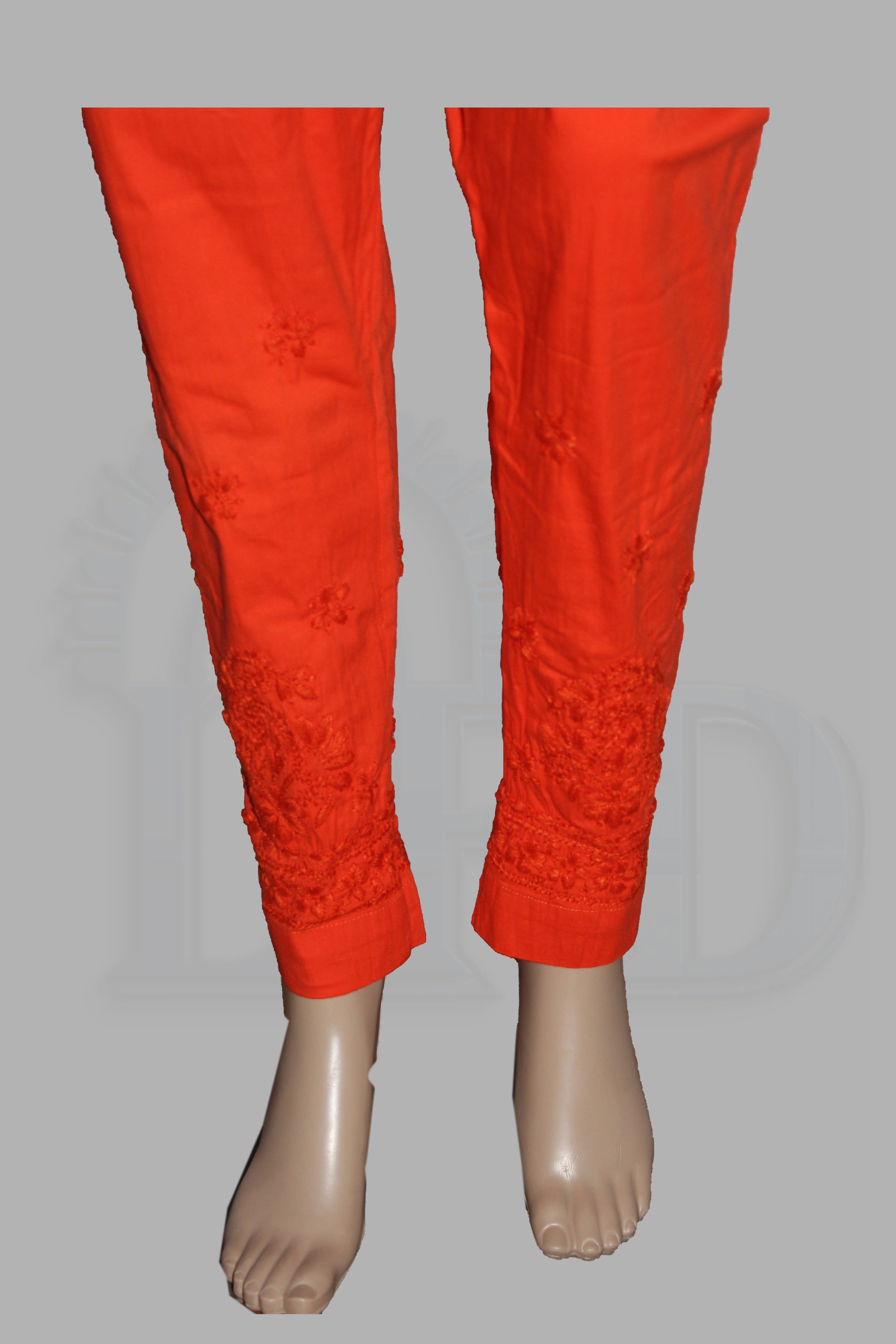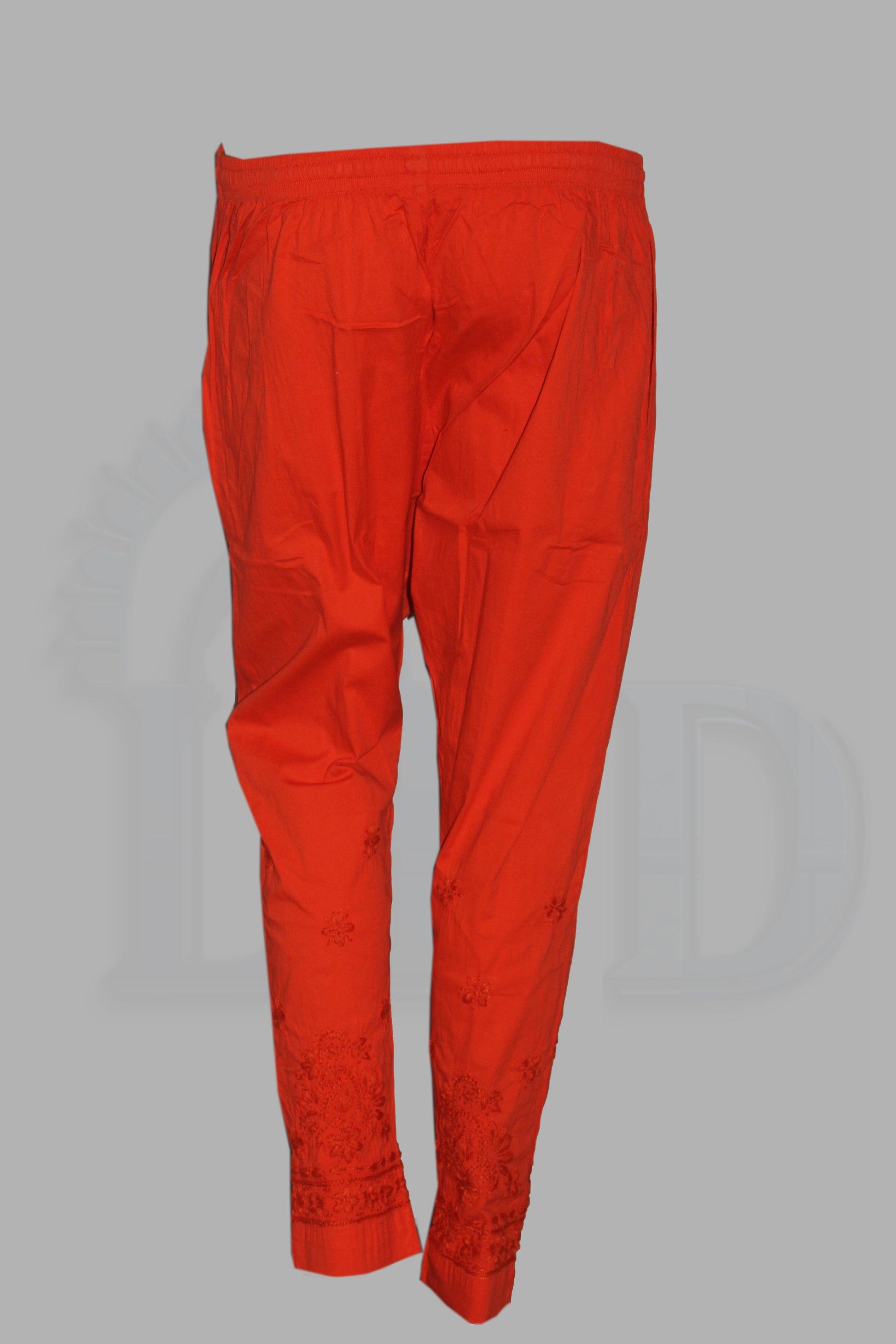 Lucknowi Chikankari Dark Orange Lycra Pant-BPt00008