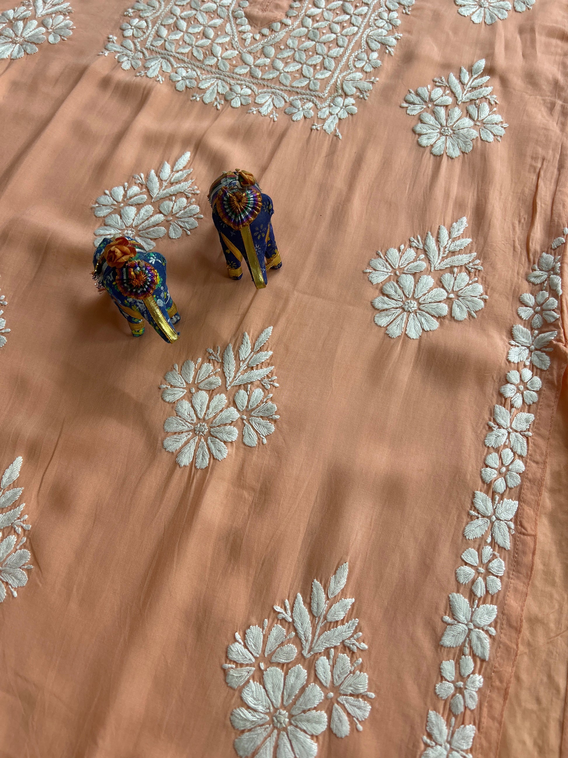 Lucknowi Chikankari Peach 'Aarooi' Modal Kurti-K60058