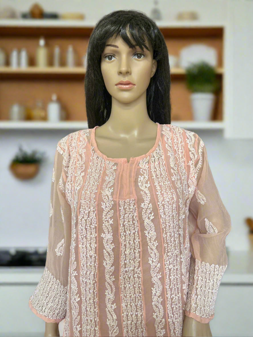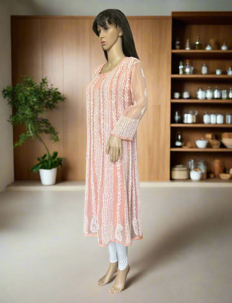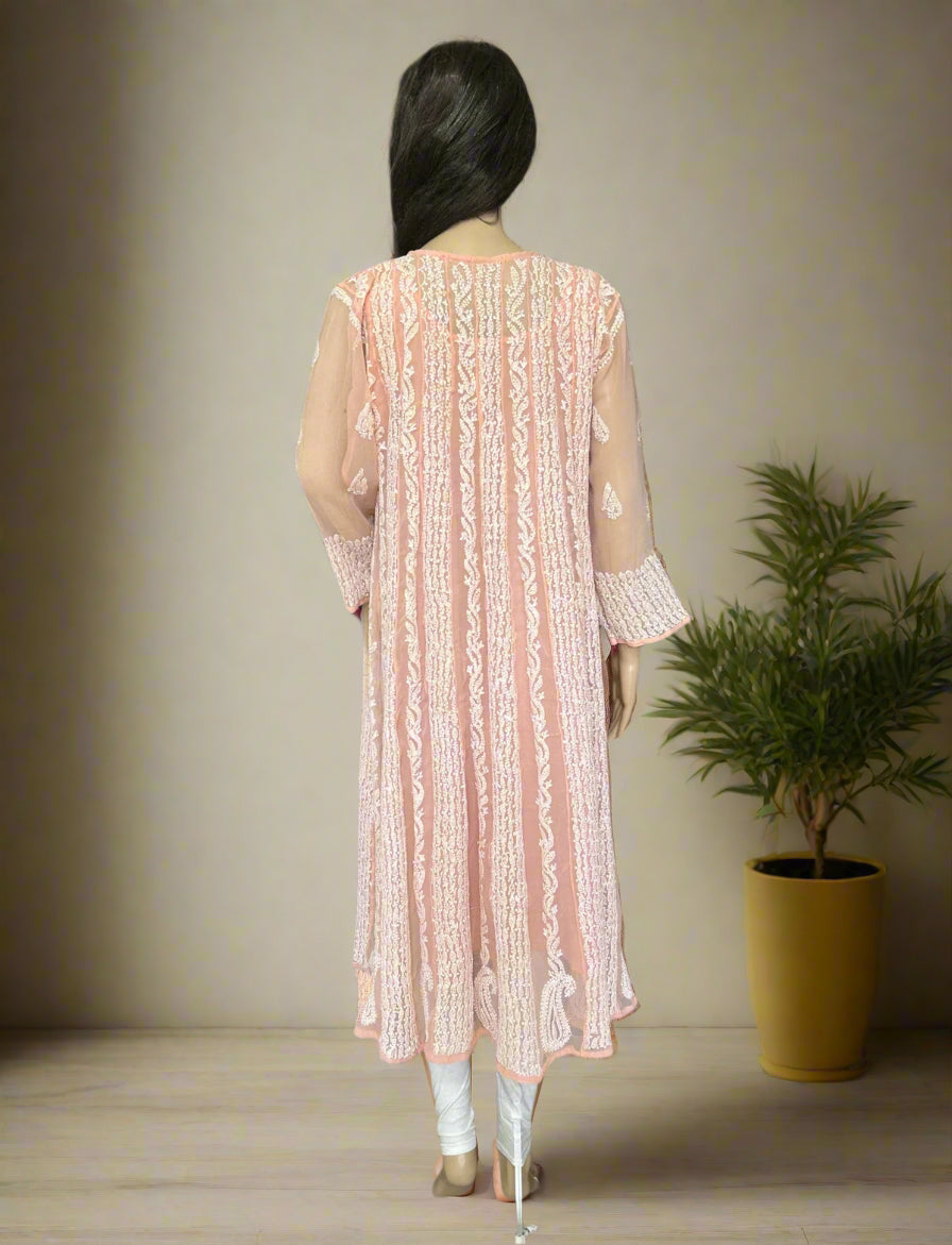 Lucknowi Chikankari Peach Georgette Anarkali-K000029