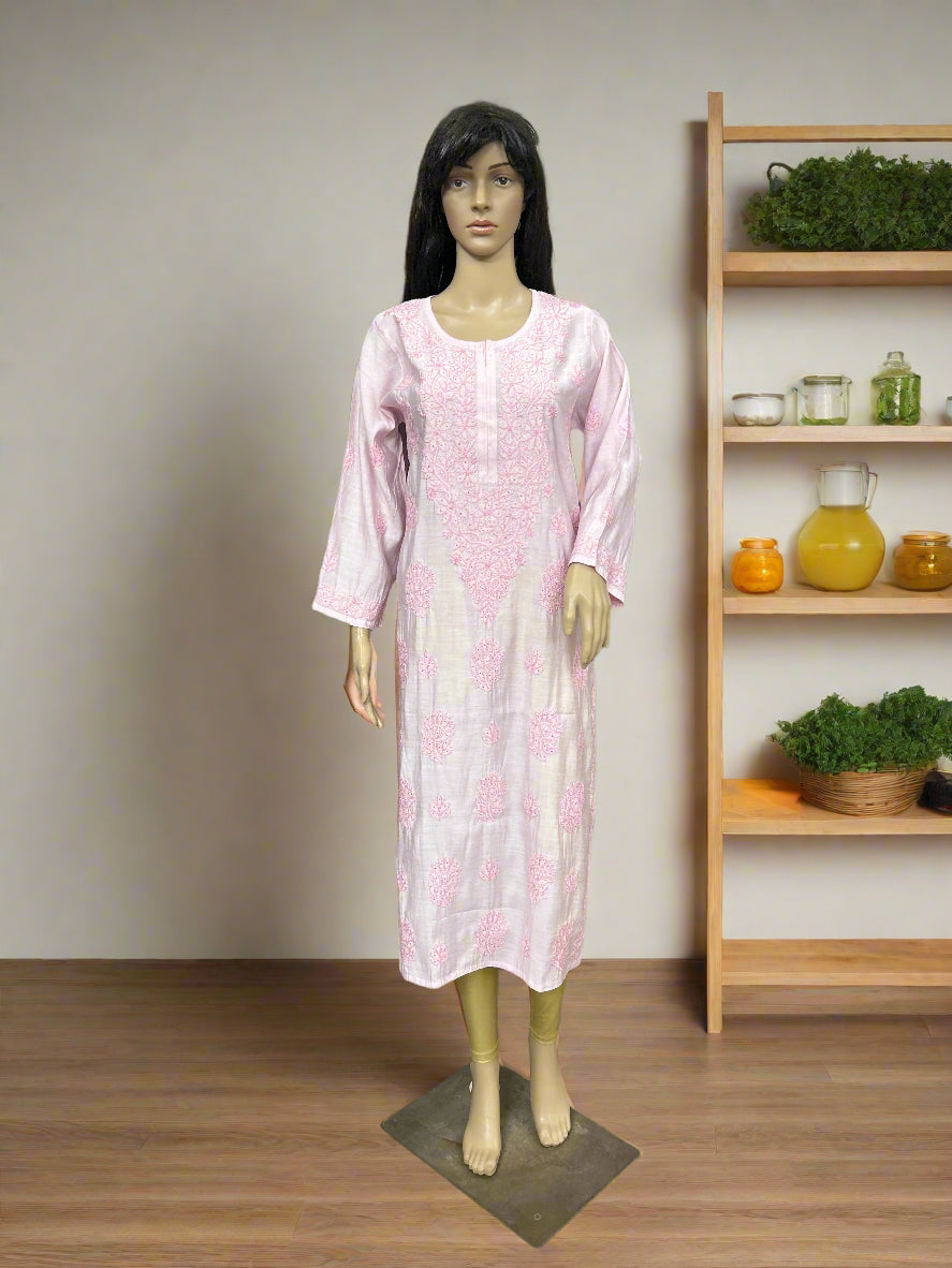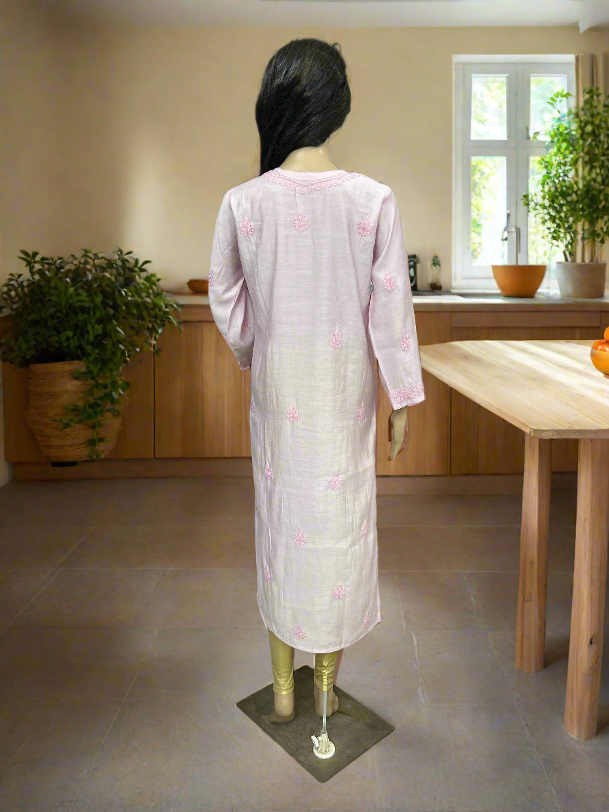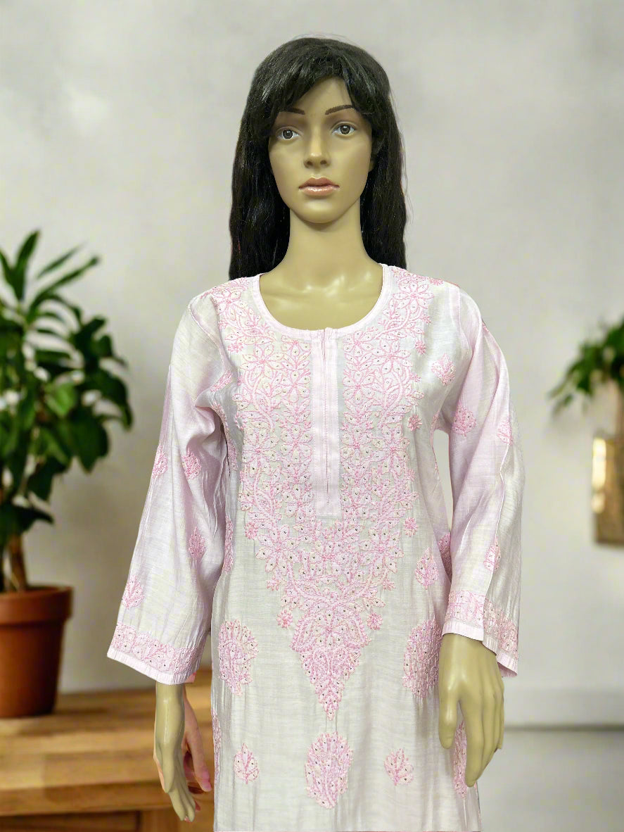 Lucknowi Chikankari Pink Chanderi Kurti-K000173