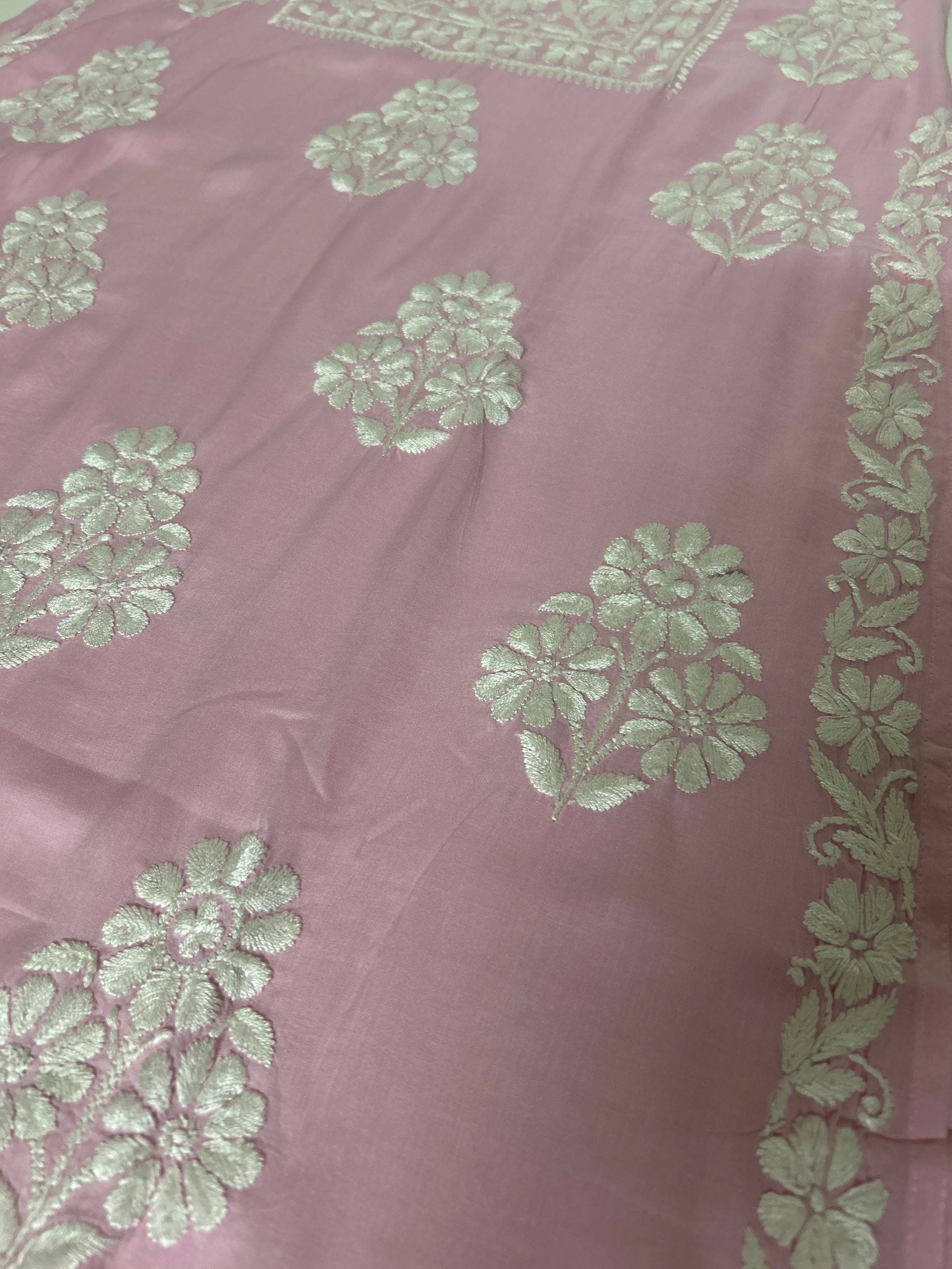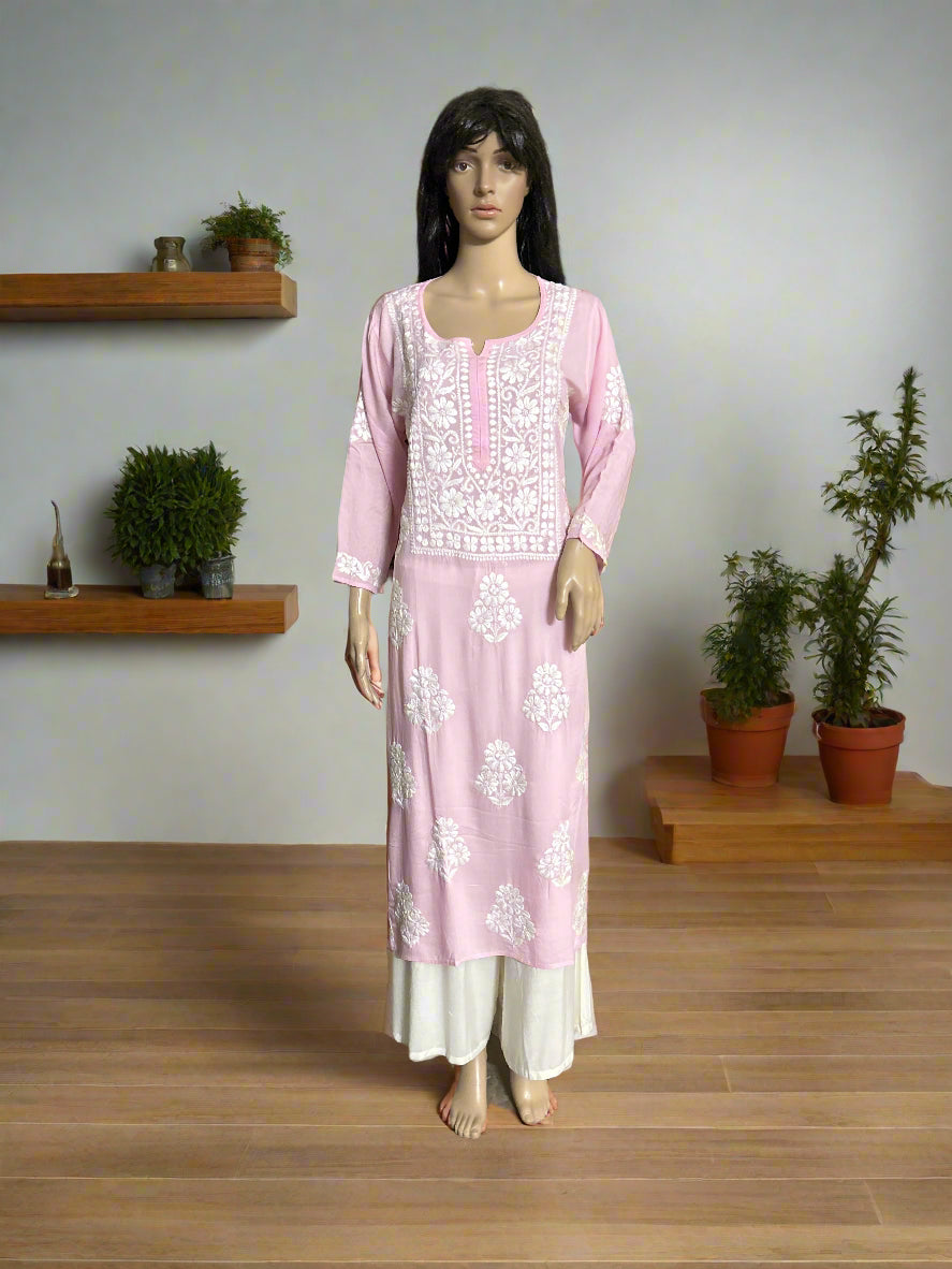 Lucknowi Chikankari Pink Modal Kurti-K50079
