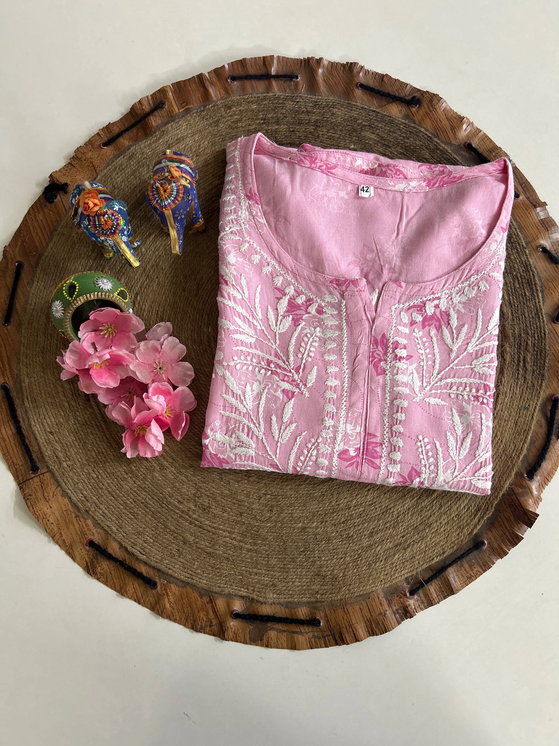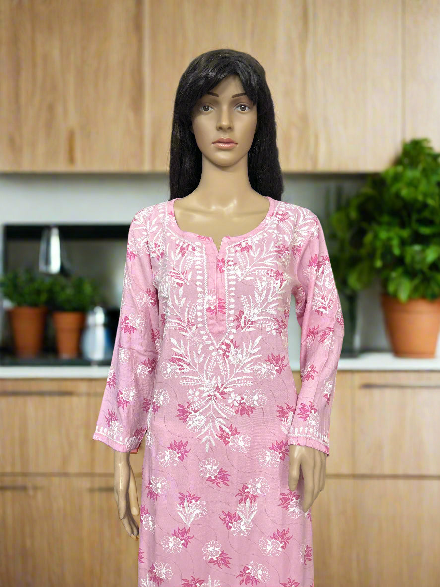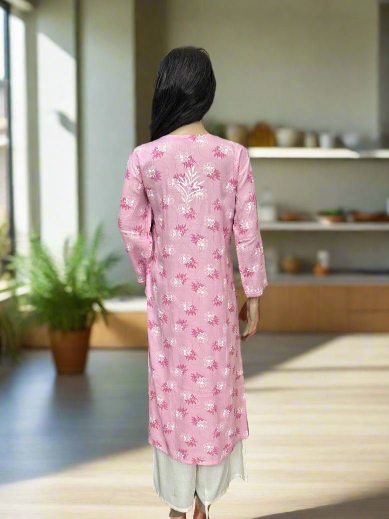 Lucknowi Chikankari Pink Printed Rayon Kurti-K000073