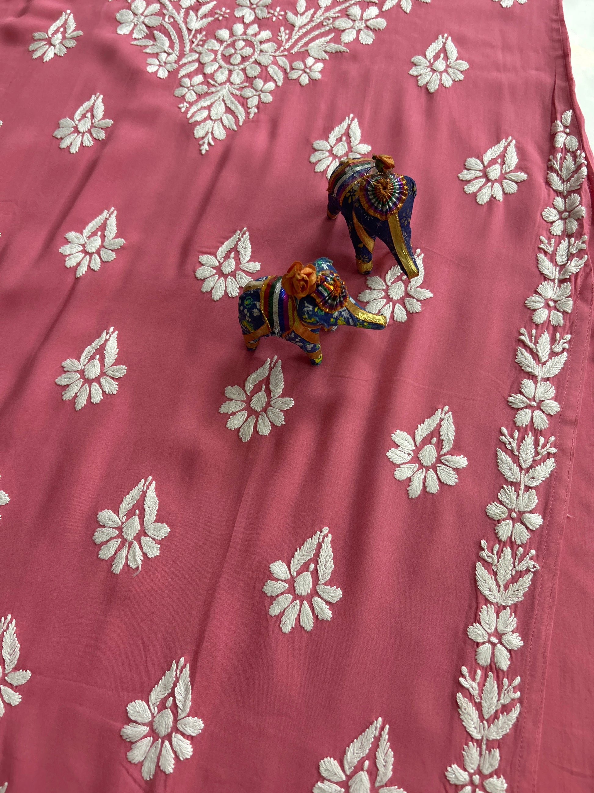 Lucknowi Chikankari Pink 'Shagufta' Modal Kurti-K50087