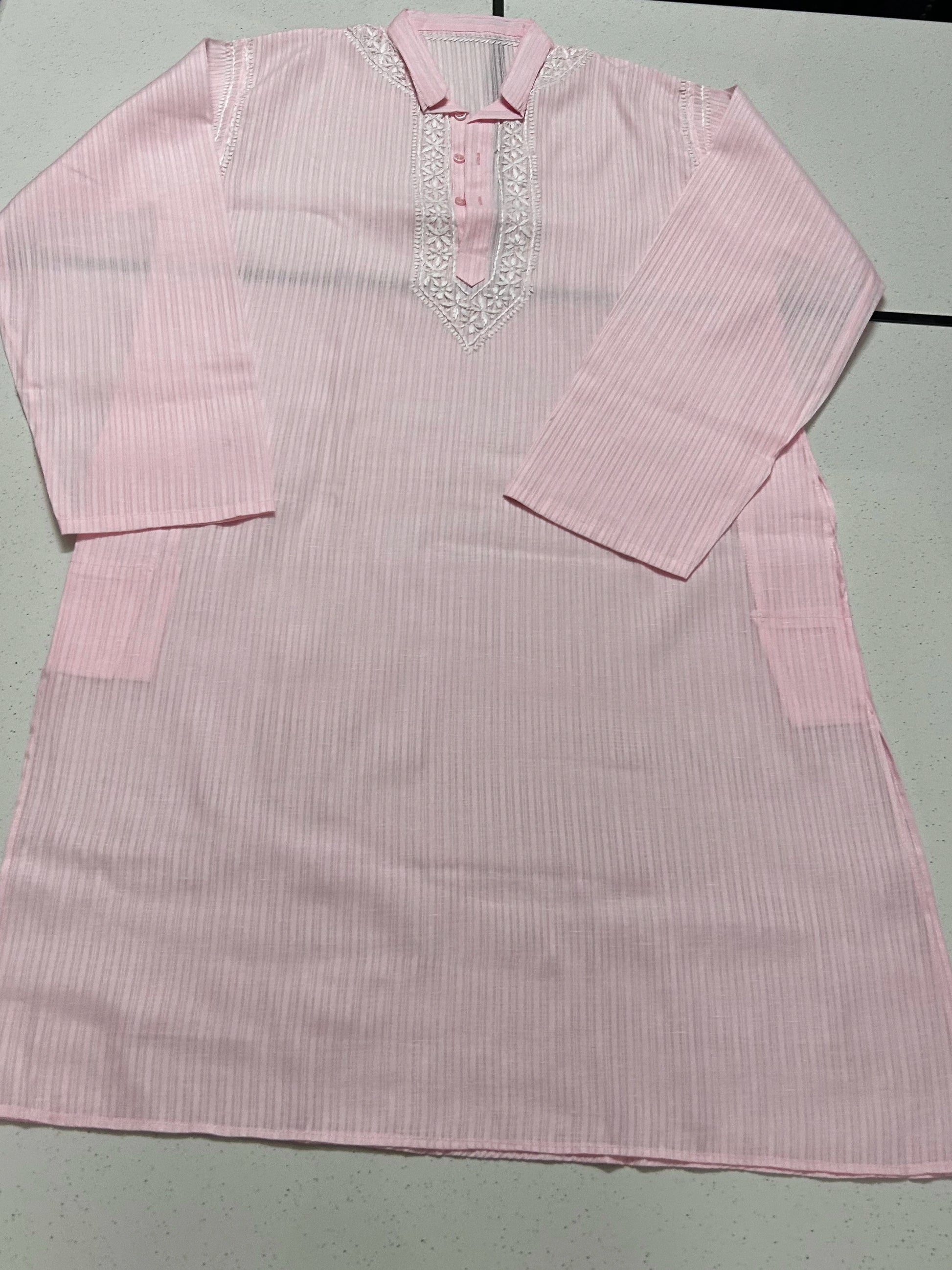 Lucknowi Chikankari Pink 'Shgufta' Cotton Gents Kurta-GK40002