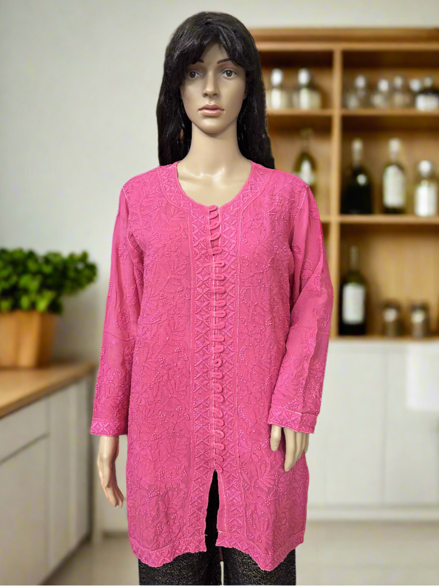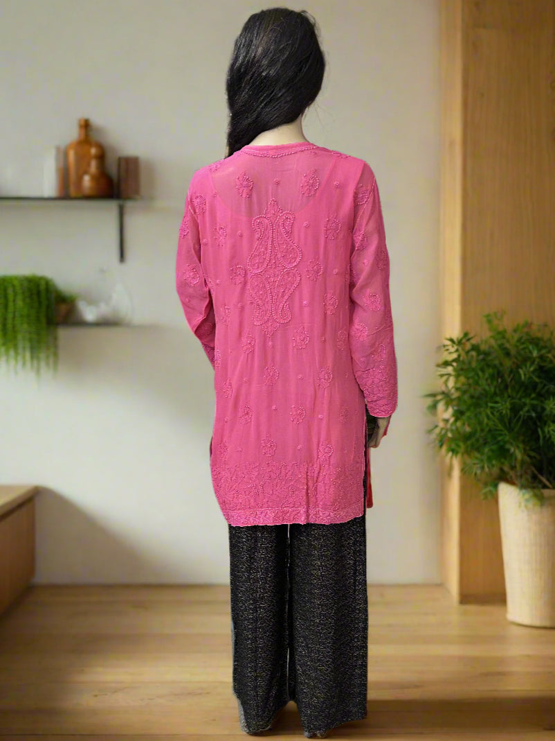 Lucknowi Chikankari Pink Viscose Short Kurti-T50016