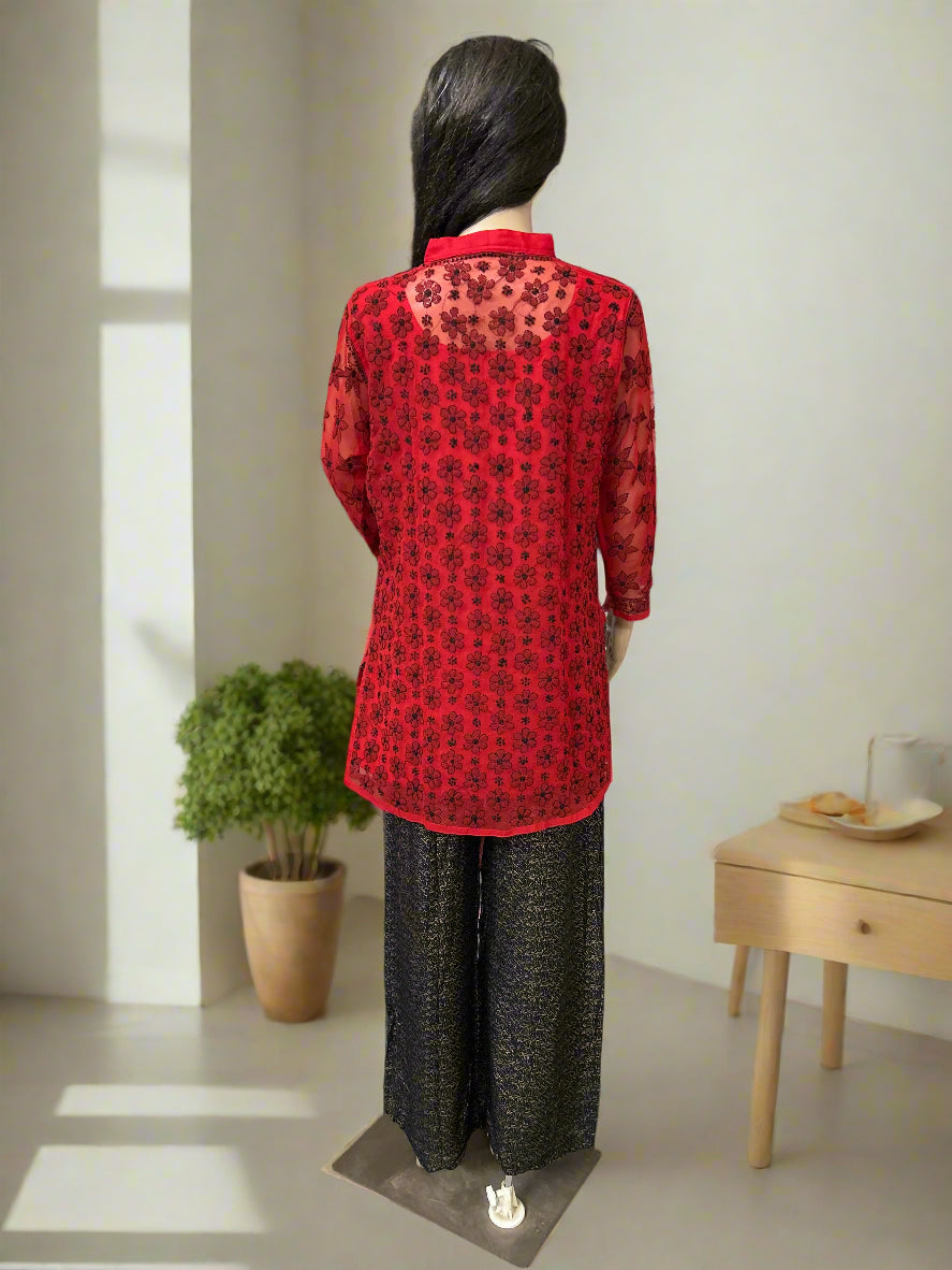 Lucknowi Chikankari Red Georgette Short Kurti-T50015