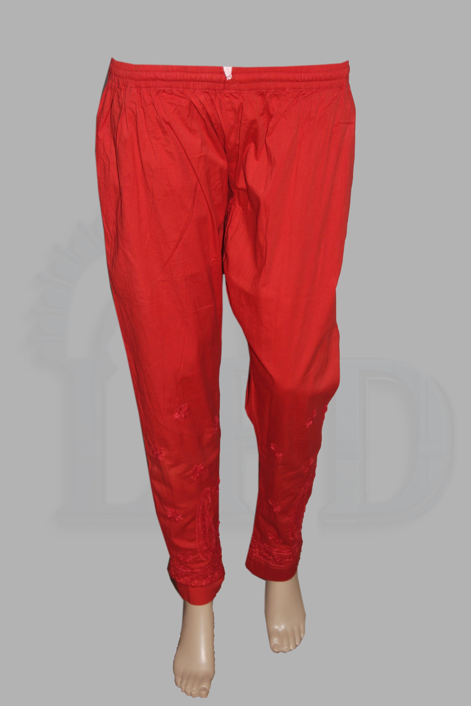 Lucknowi Chikankari Red Lycra Pant-BPt00004
