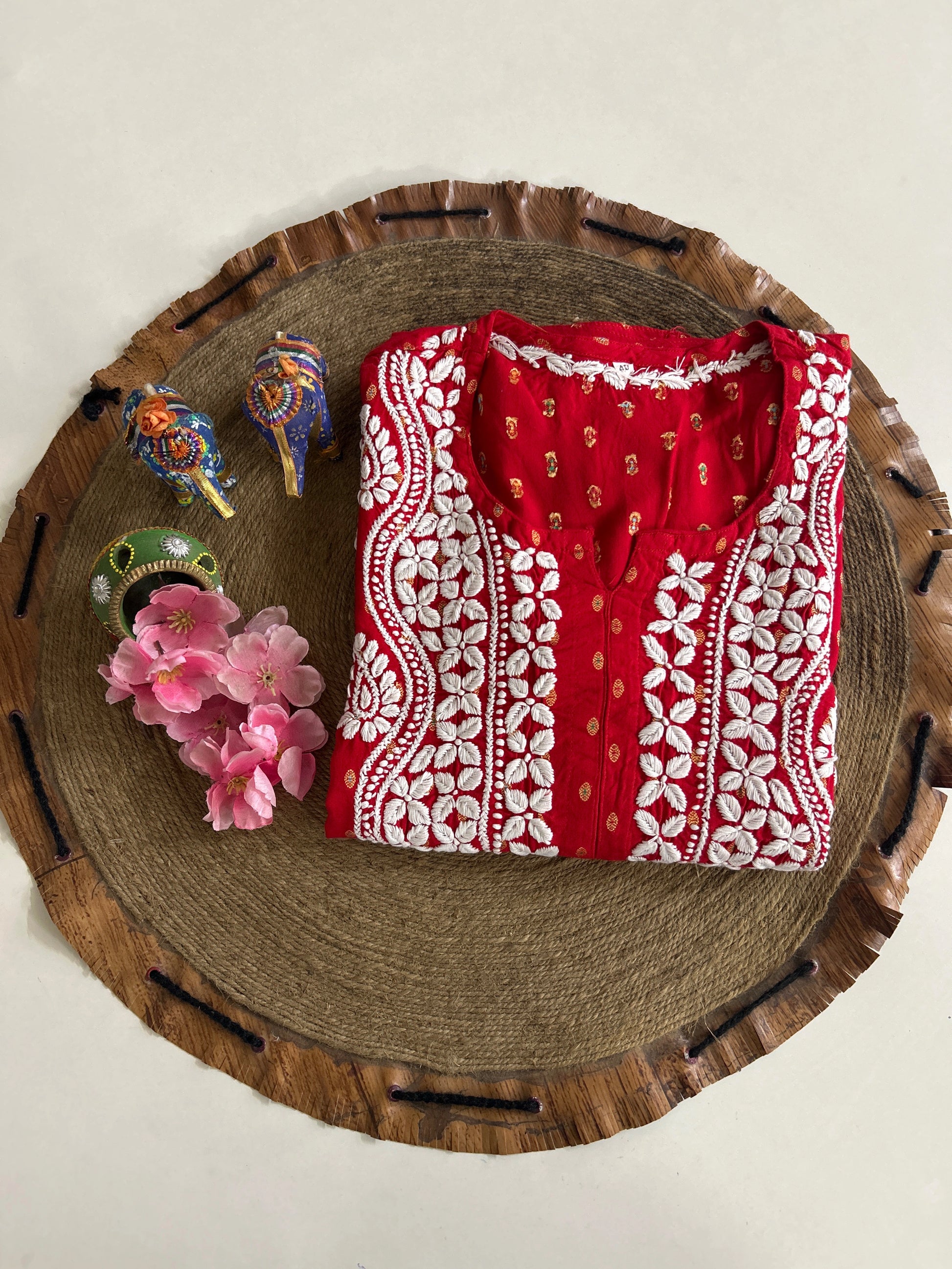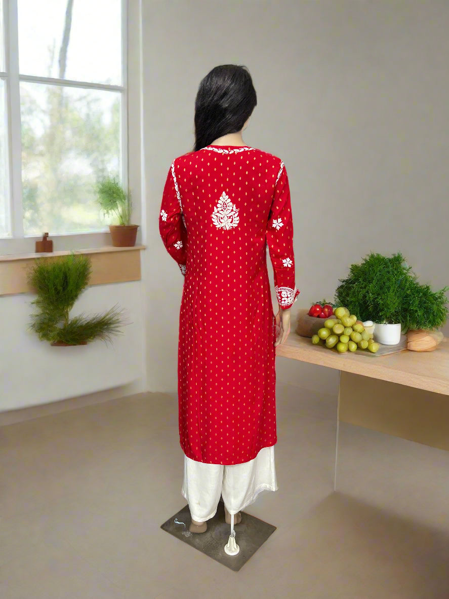 Lucknowi Chikankari Red Rayon Kurti-K20008