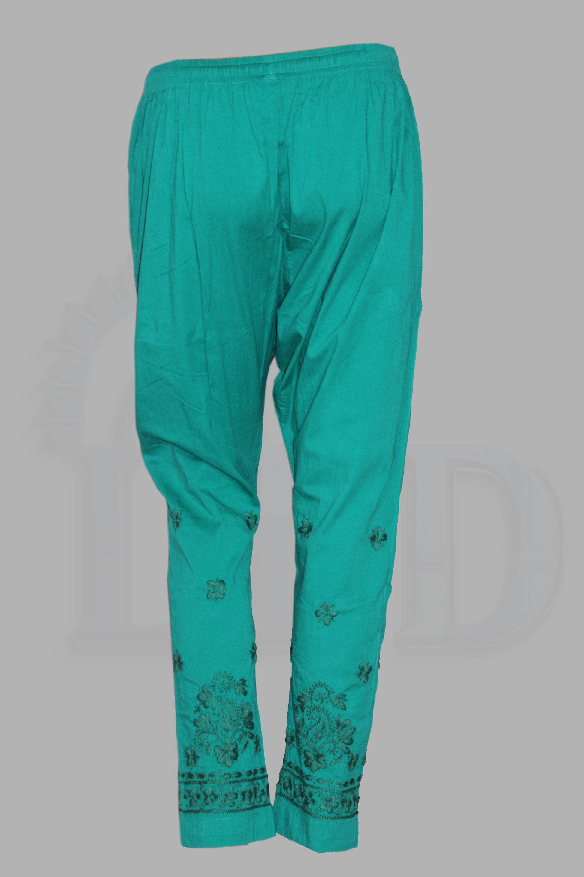 Lucknowi Chikankari Teal Green Lycra Pant-BPt00010