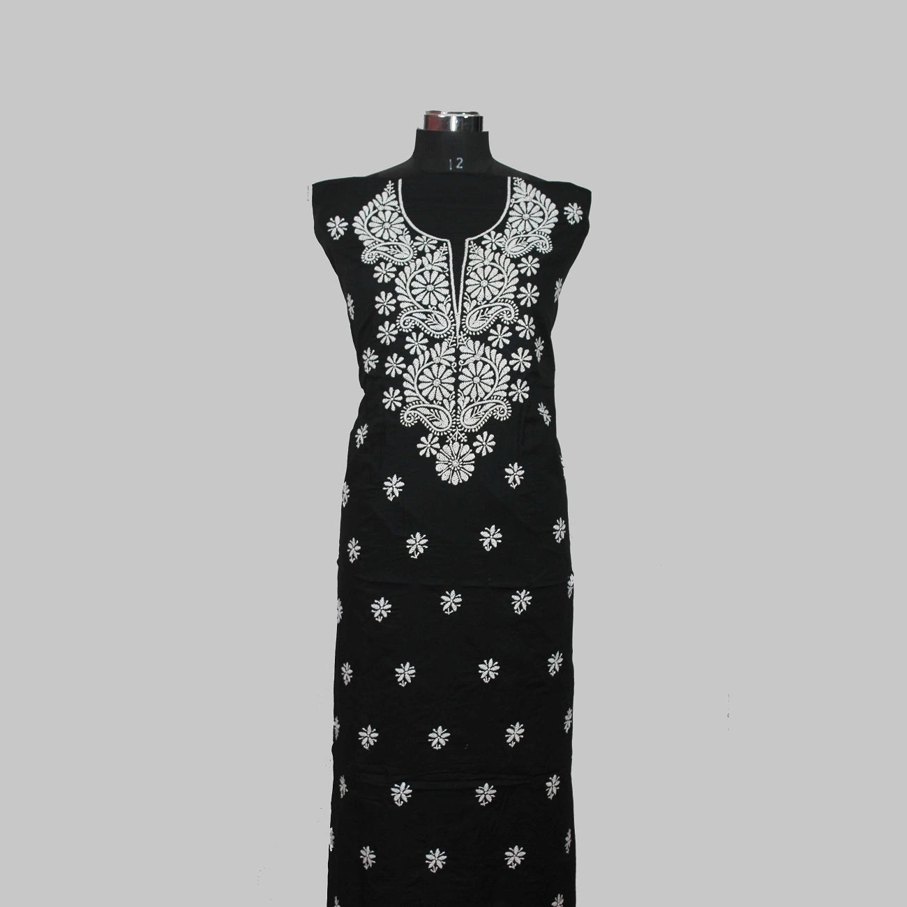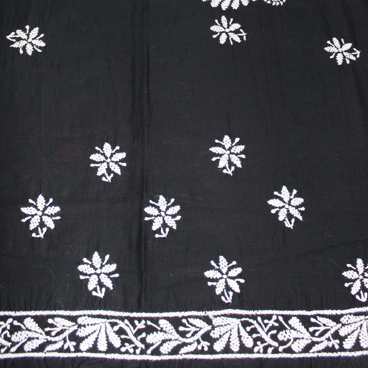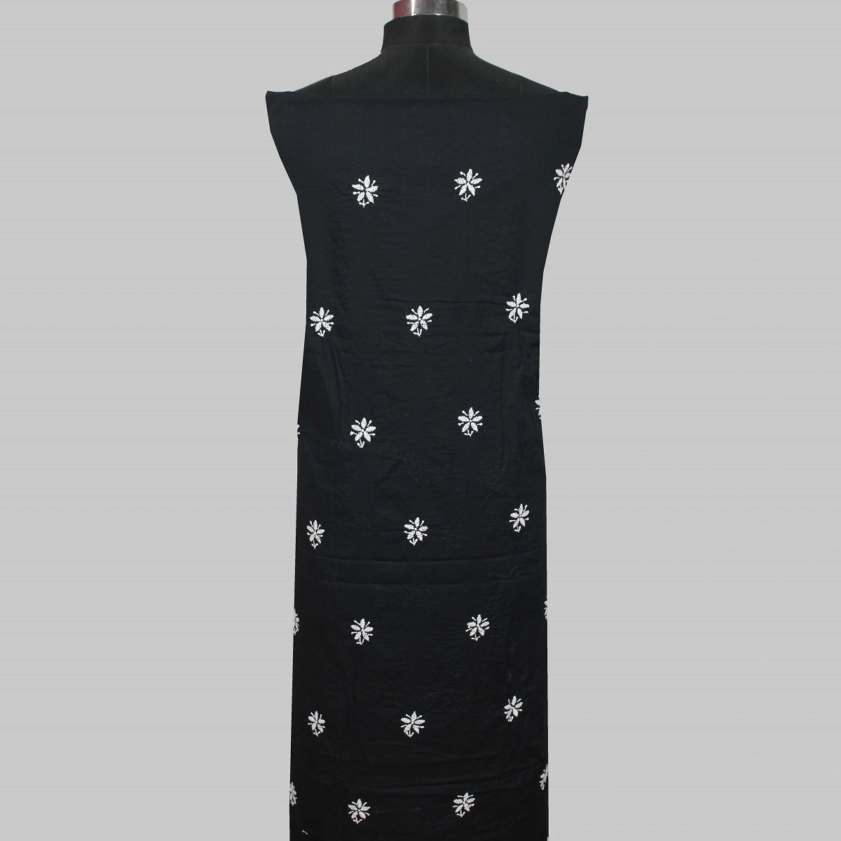 Lucknowi Chikankari Unstitched Black Cotton Kurta-Bottom Fabric-U20013