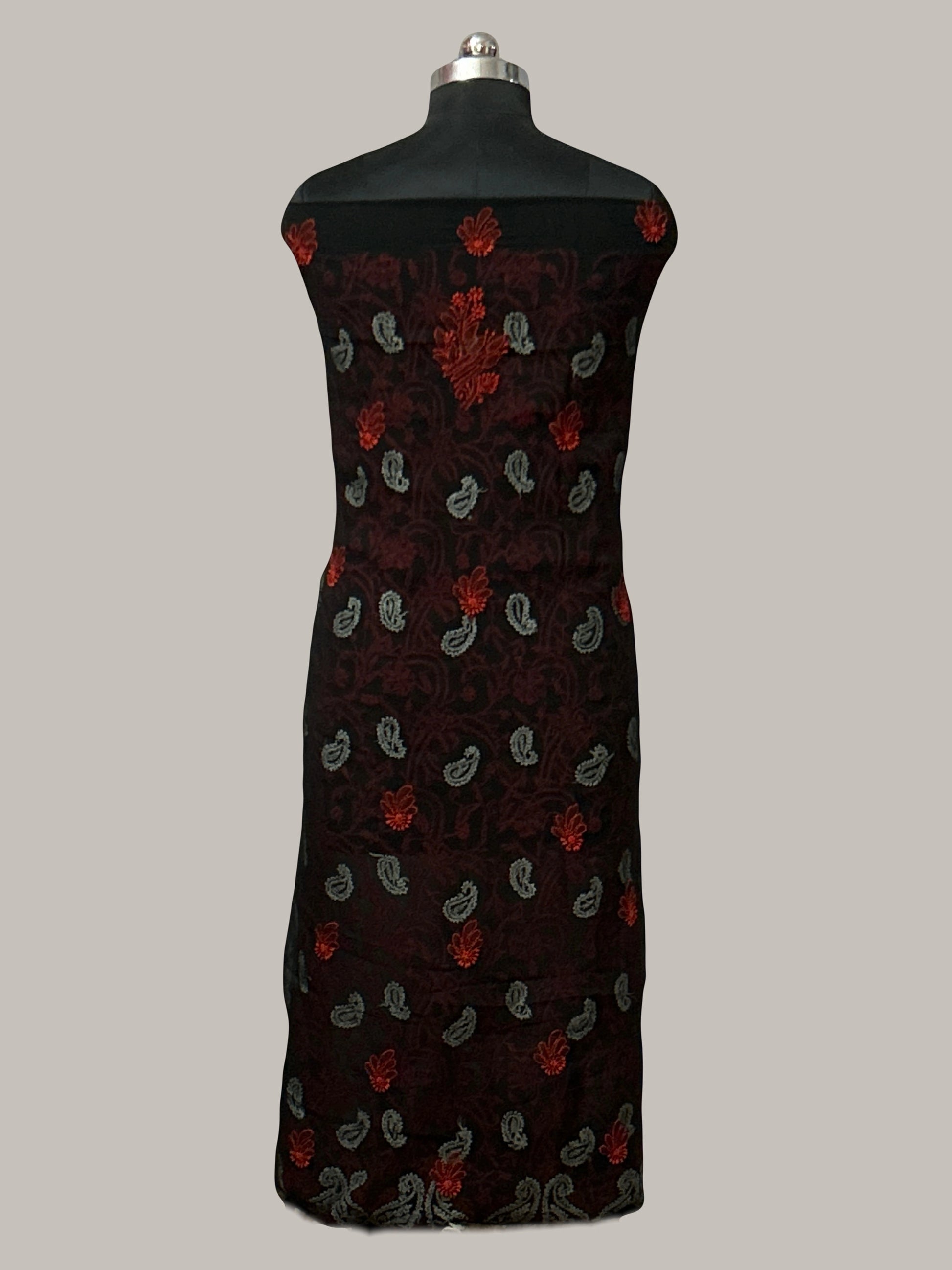 Lucknowi Chikankari Unstitched Black Georgette Kurta Fabric-U10006