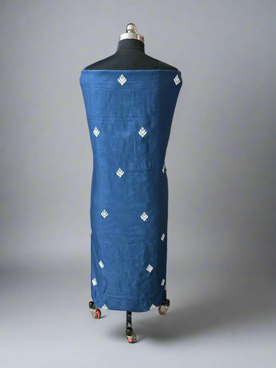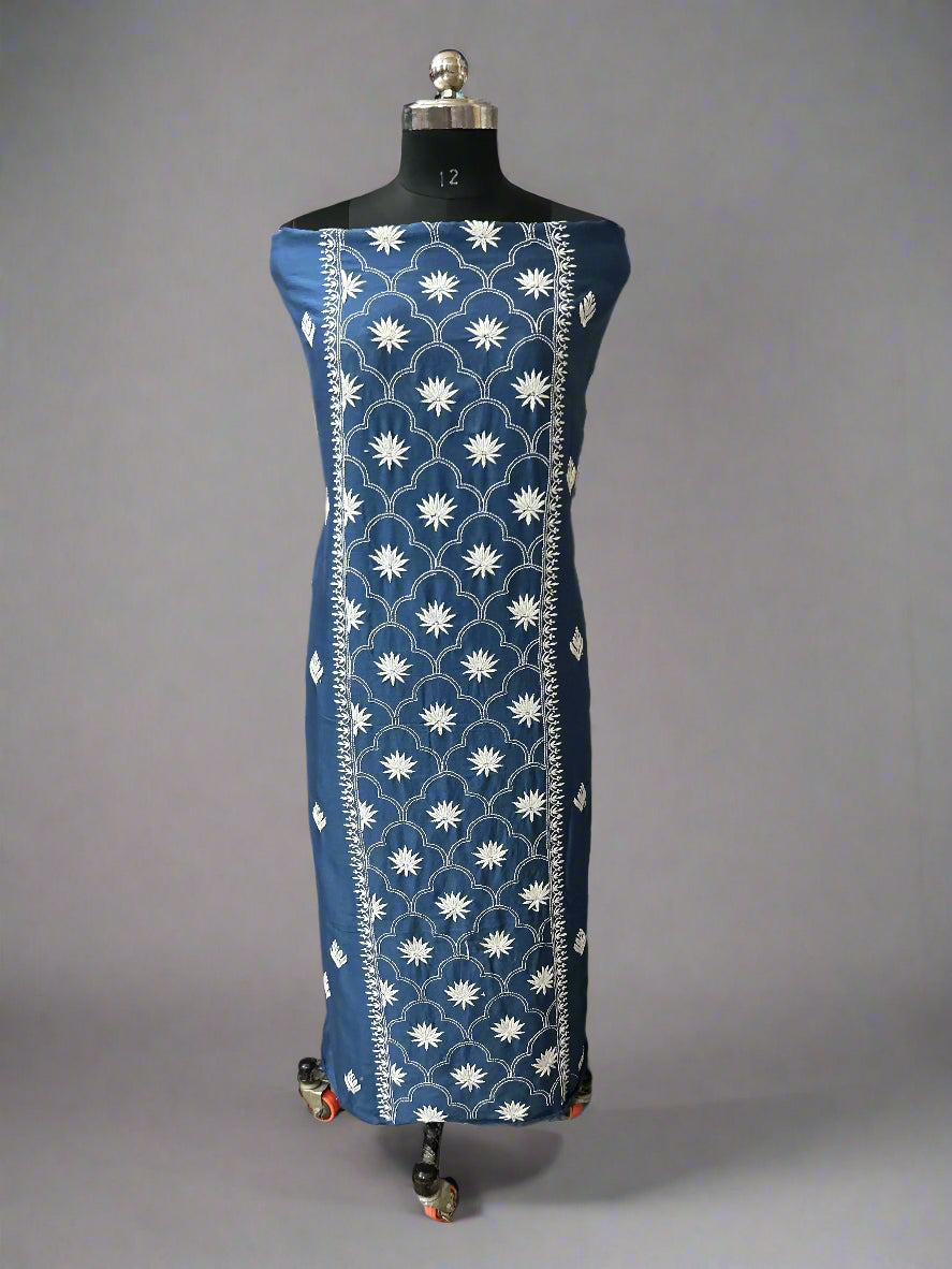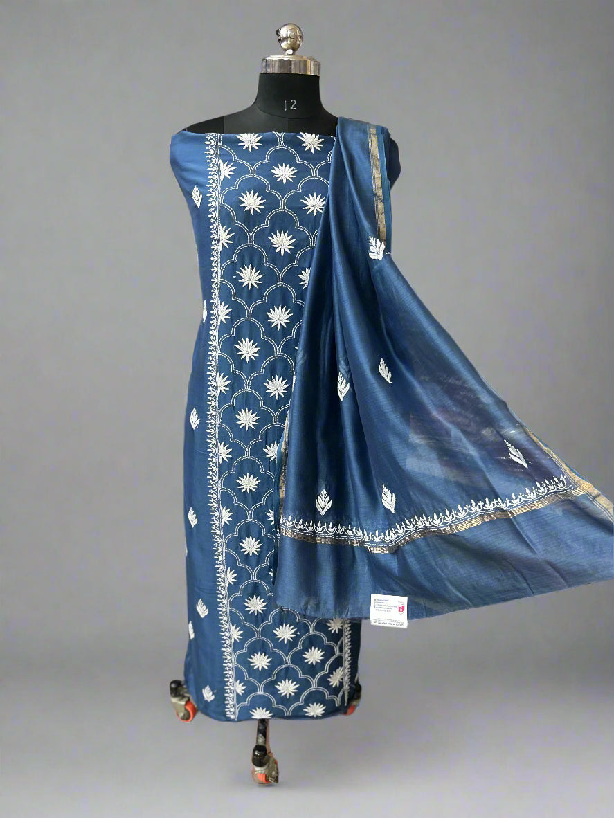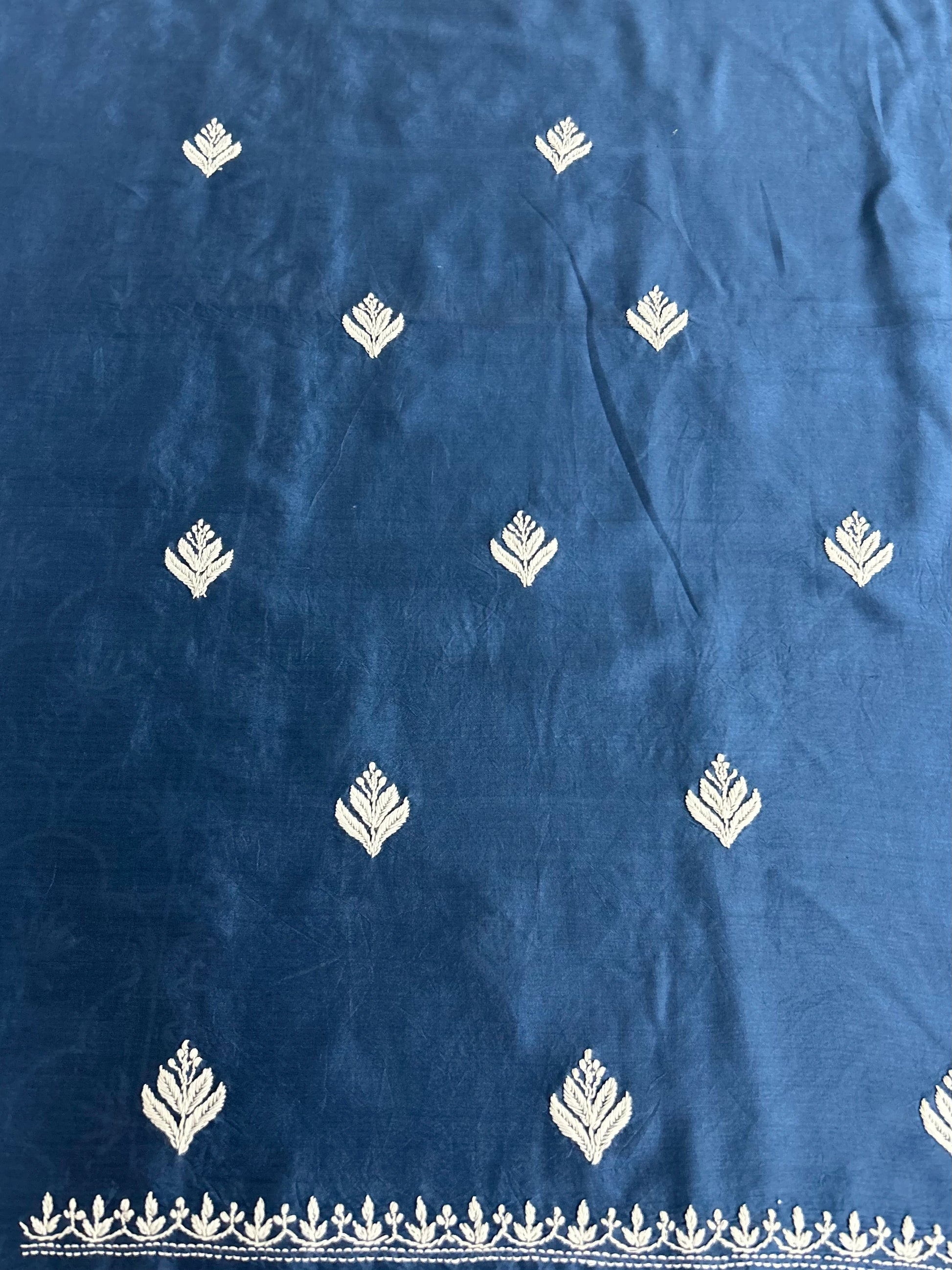 Lucknowi Chikankari Unstitched Blue Chanderi Kurta-Dupatta Fabric-PG400055