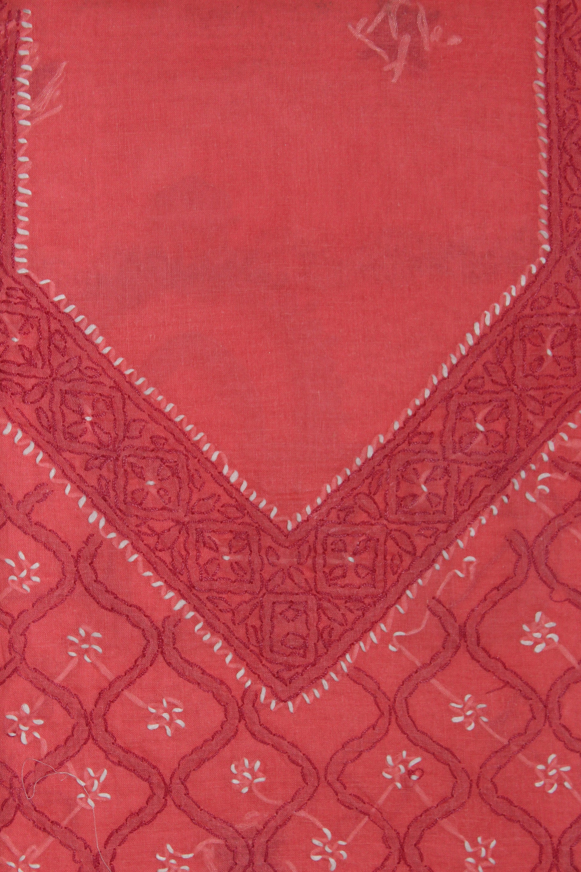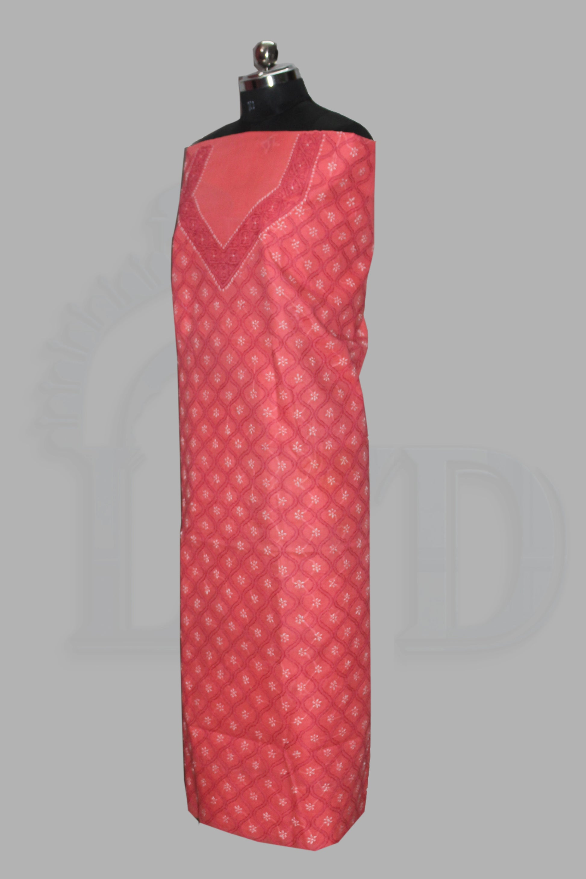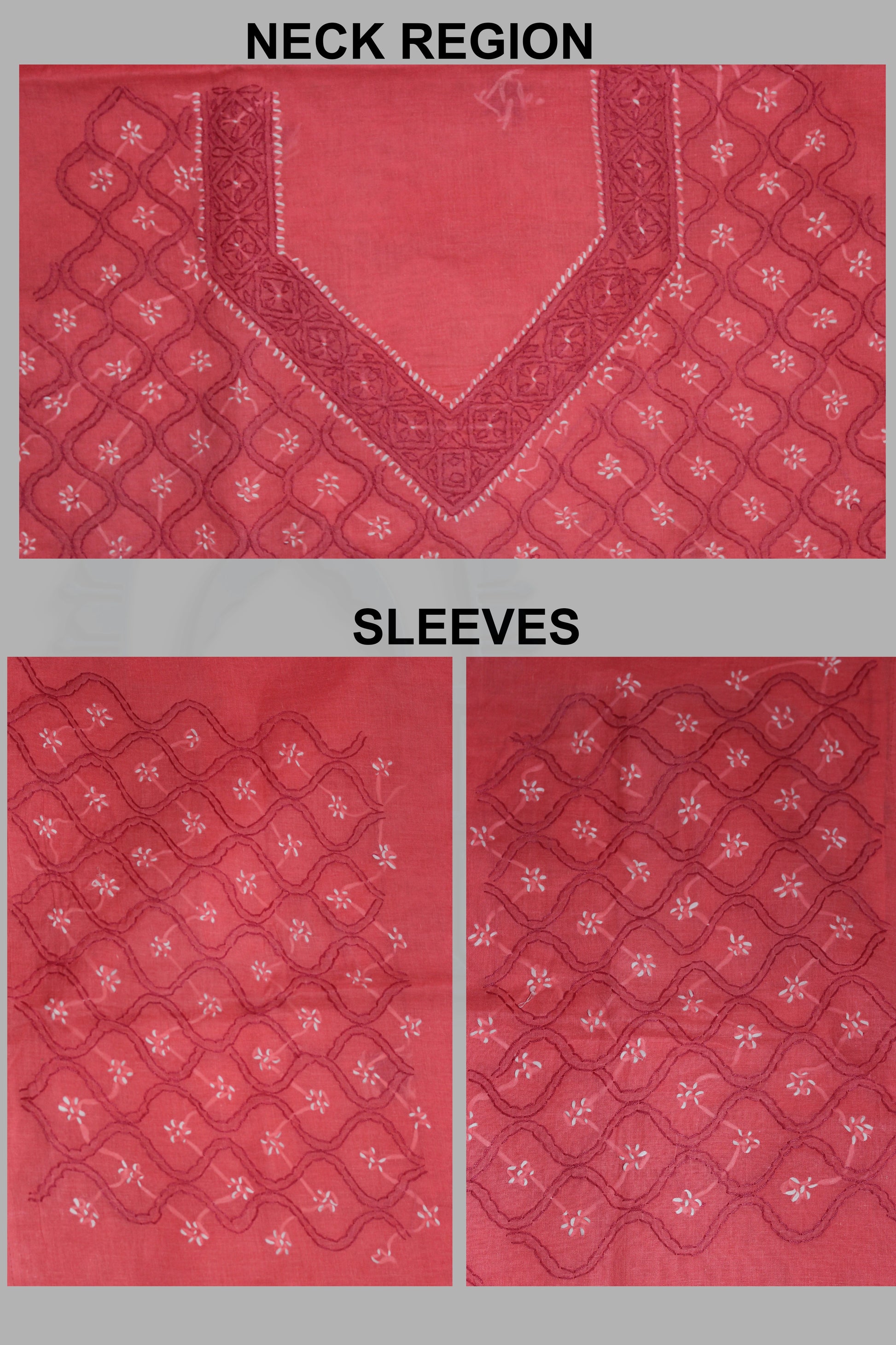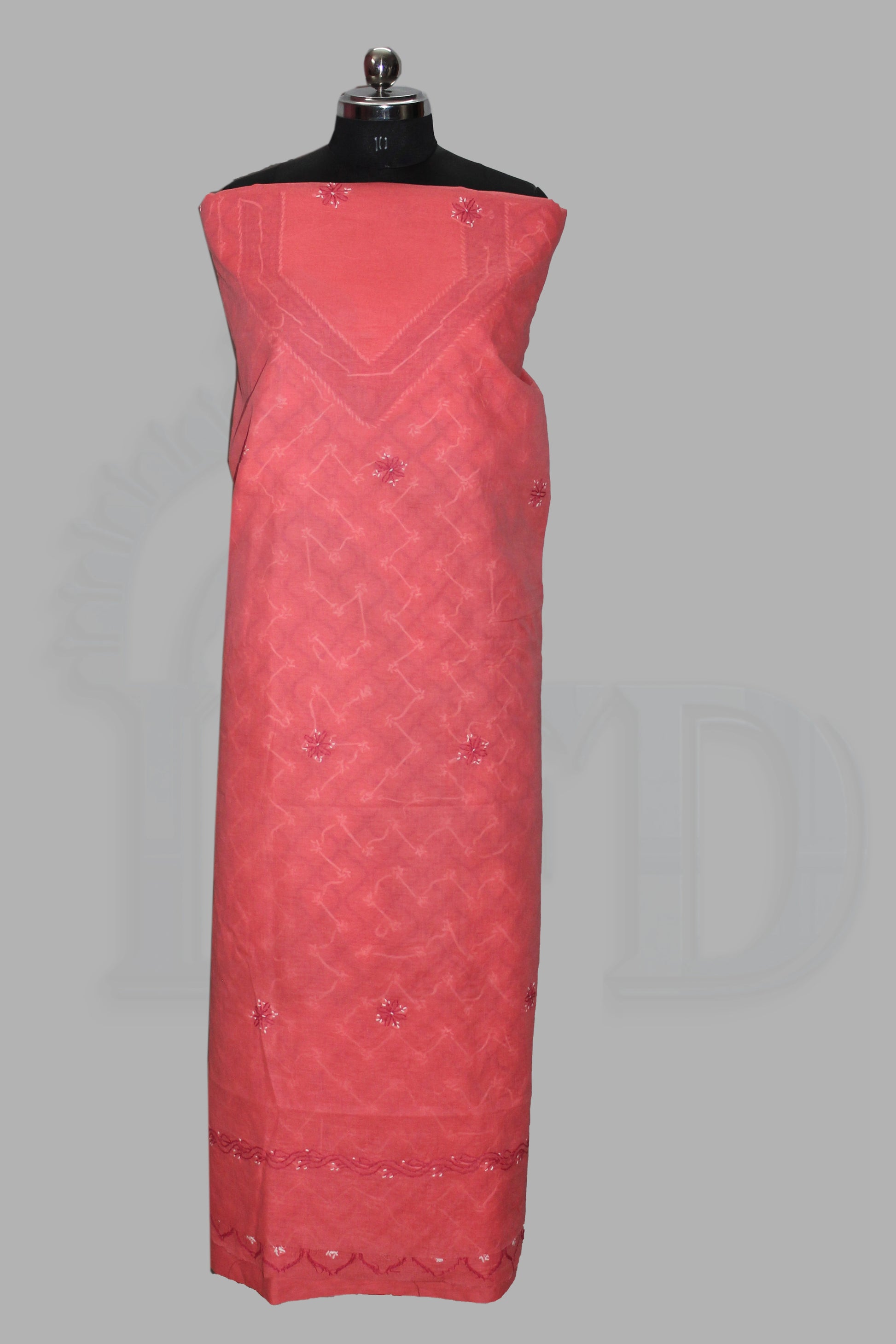 Lucknowi Chikankari Unstitched Coral Pink Cotton Kurta-Bottom Fabric-U20007
