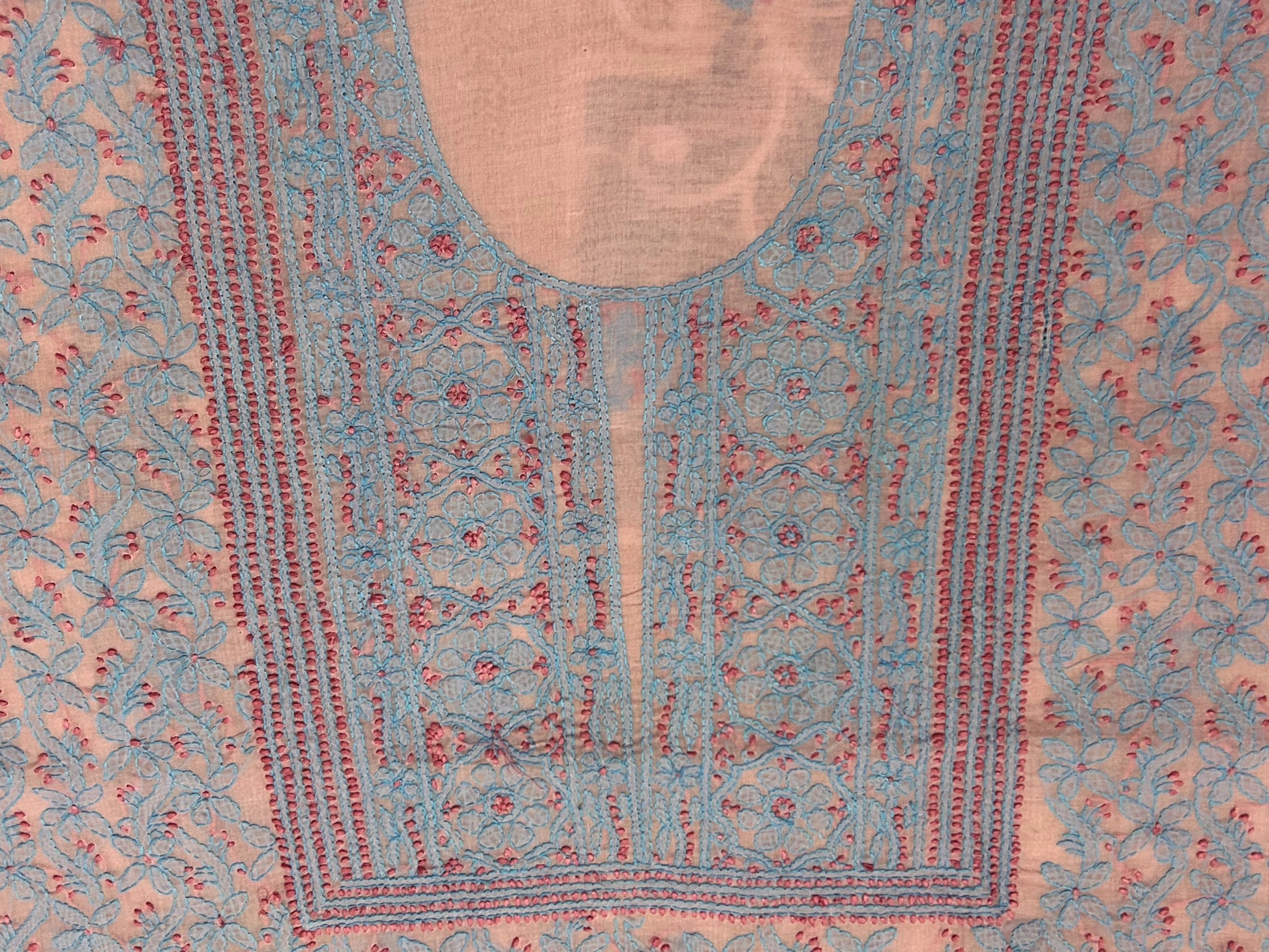Crafted from pure cotton, this Lucknowi Chikankari unstitched kurta fabric in a delicate peach shade offers both comfort and elegance. The traditional hand-embroidered chikankari work showcases intricate artistry, making it ideal for creating a refined, breathable garment suited to warm climates. Perfect for those seeking authentic craftsmanship combined with natural fabric quality.