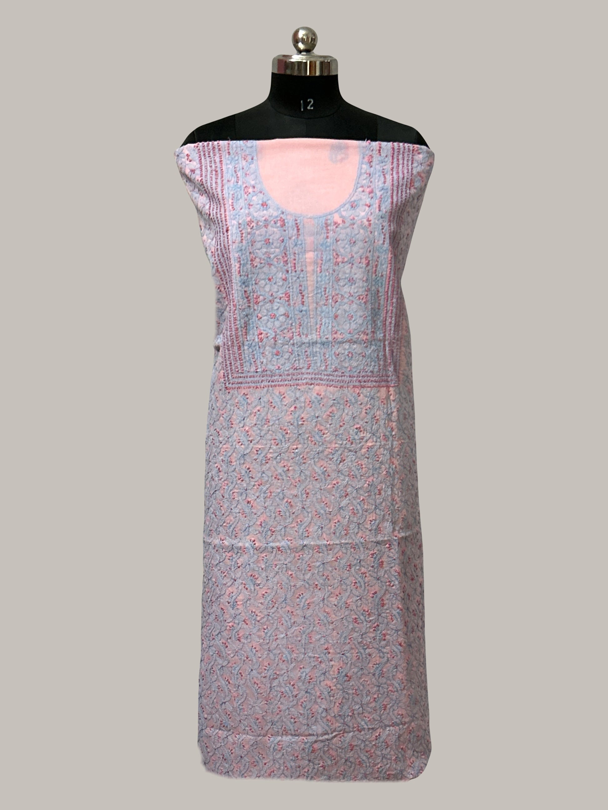 Lucknowi Chikankari Unstitched Light Pink Cotton Kurta Fabric-U10029