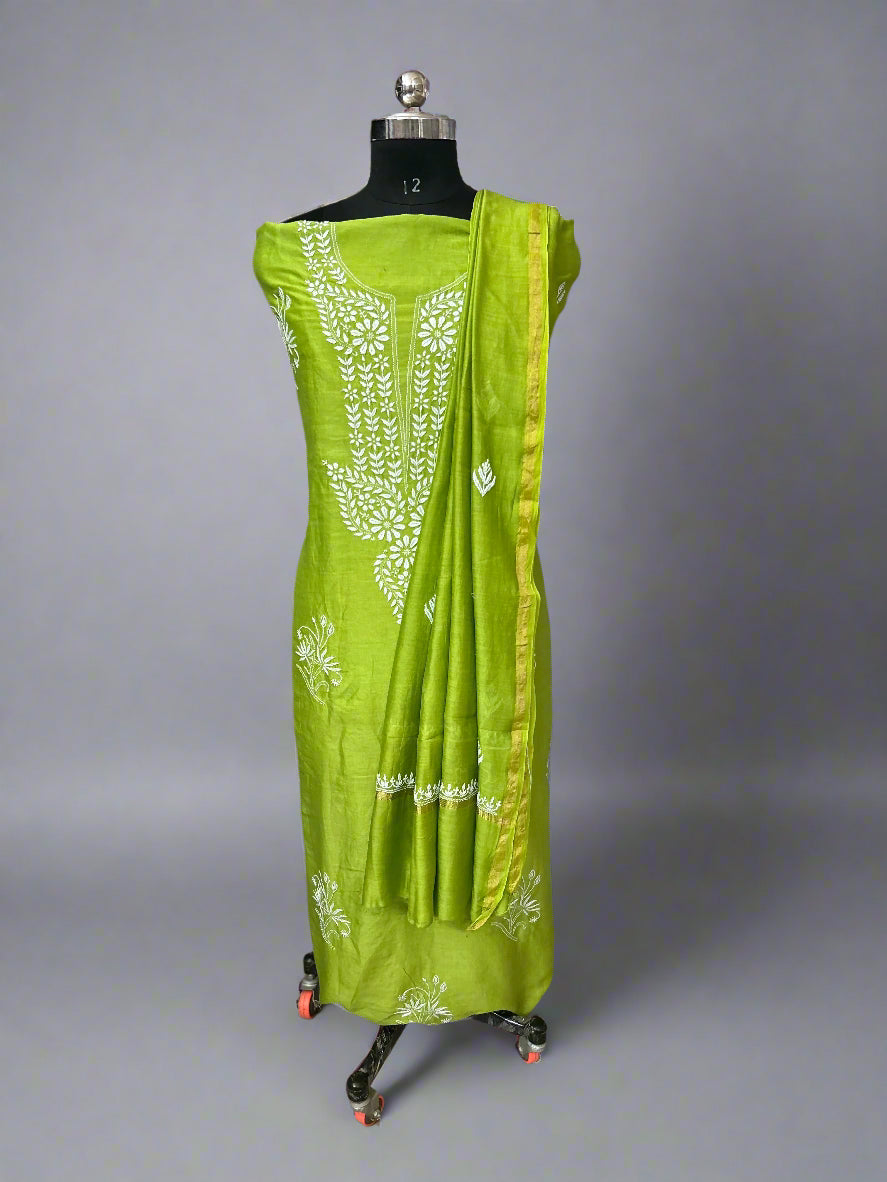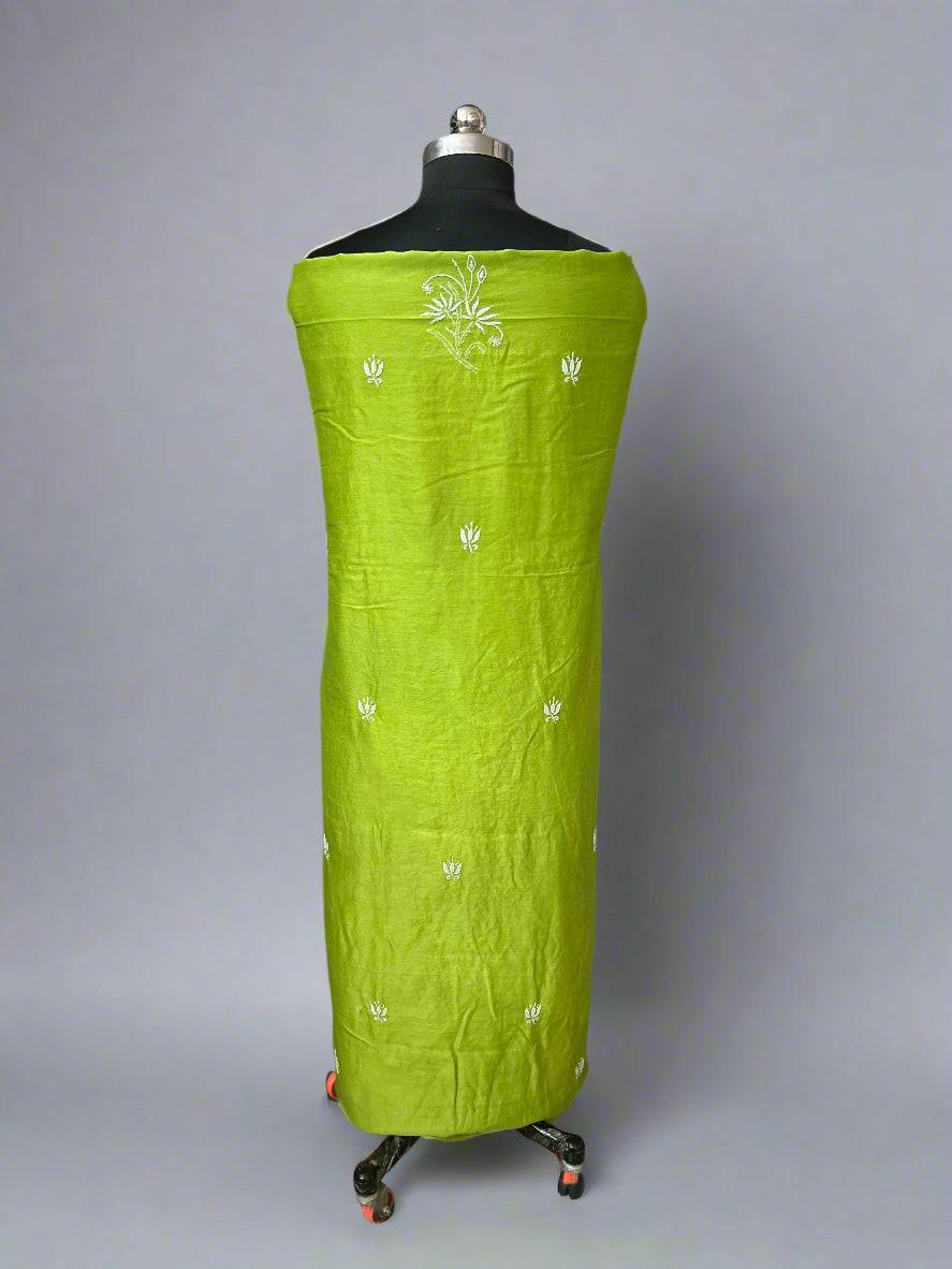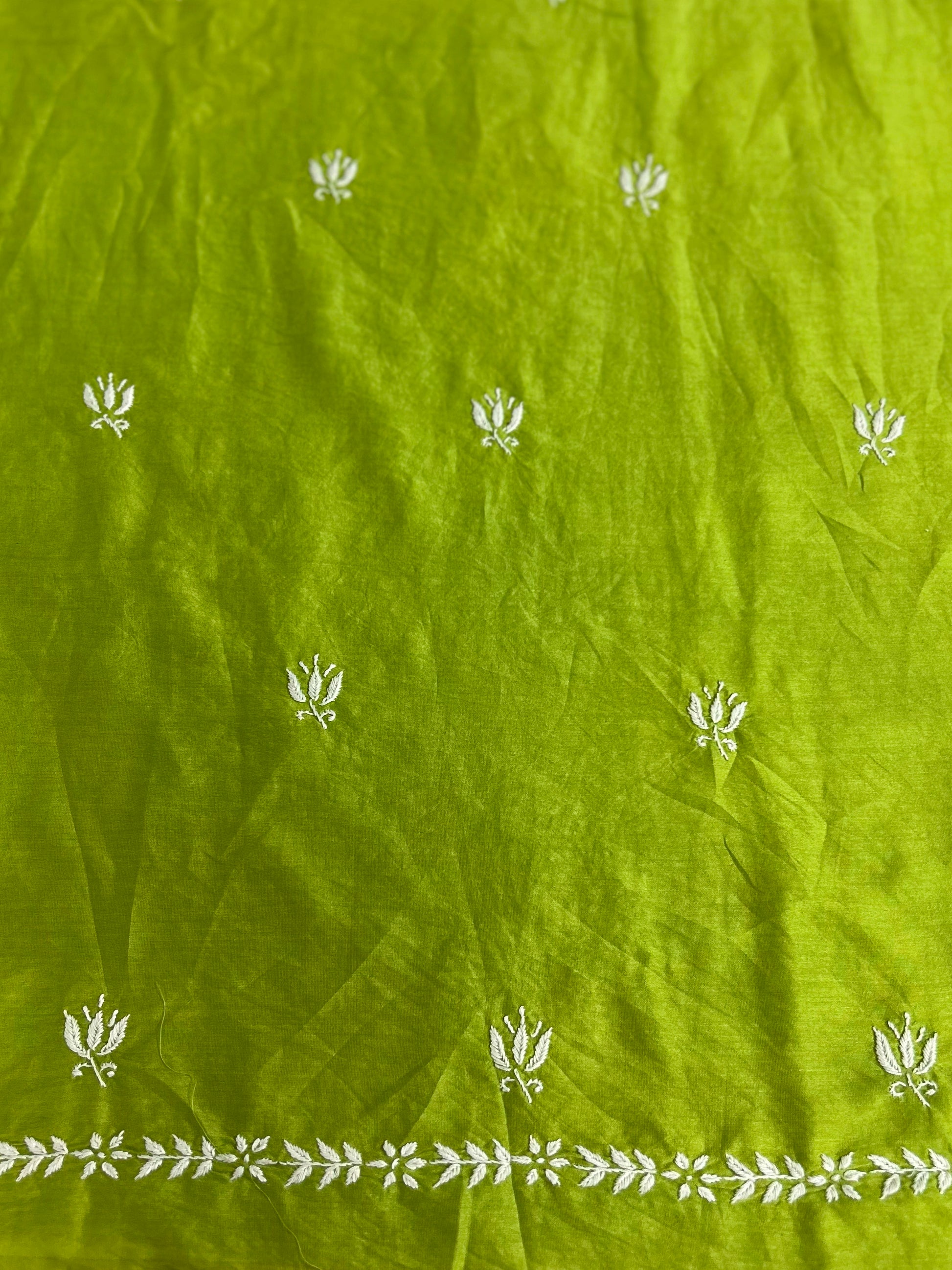 Lucknowi Chikankari Unstitched Neon Yellow Chanderi Kurta-Dupatta Fabric-PG400047